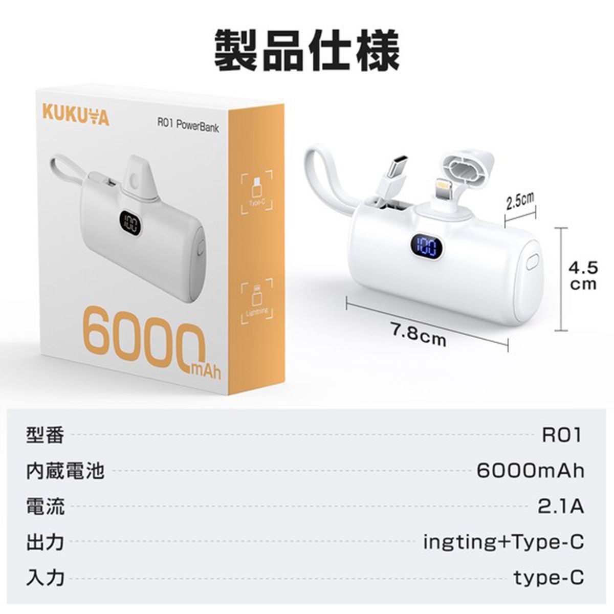 ・商品名:モバイルバッテリー 大容量 6000mAh