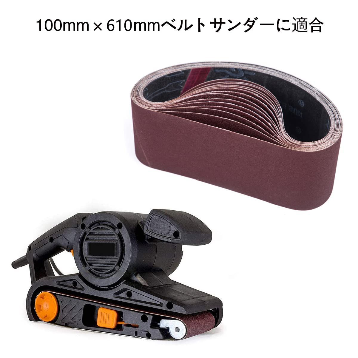 10個研磨ベルトサンドペーパー 100x610 mm ベルトサンダー用、80/120/150/240/400 グリットの各 2 個