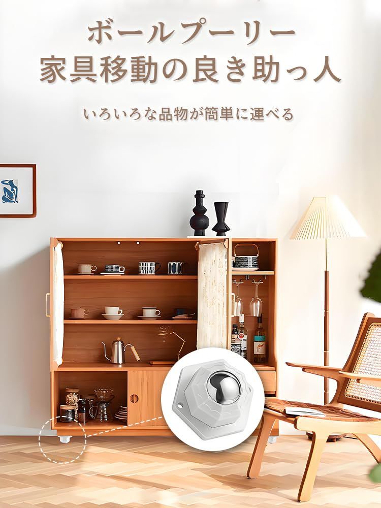 【適用場所】貼るだけキャスター このボールキャスターは、さまざまな場所で使用することができます。掃除機スタンド、収納ボックス、ゴミ箱、木の板、ラップトップ、化粧品収納、キッチン、テーブルトップ、寝室、バスルーム、リビングルーム、花棚の収納に適しています。ただし、カーペットでは使用できません。カーペットの繋ぎ目で引っ掛かる可能性があるためです。