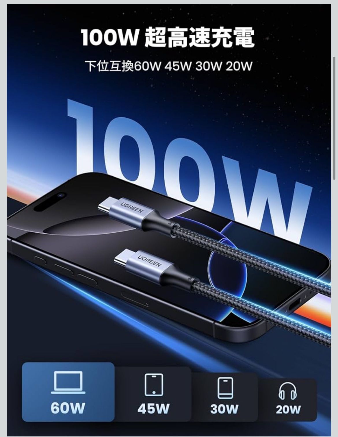🔋【幅広い互換性】 UGREEN usbc ケーブルはiPhone 16/15、MacBook Pro、Macbook Air、iMac、ChromeBook Pixel 、Dell XPS 、Moniteur 4k、 Galaxy S24、 Mate 20/ Mate 20 Pro/ P20/ P20 Pro/ Mate 10/ P10、HTC U11/ 10など様々なUSB type cデバイスに対応できます。スマホだけでなく必要の充電時間を短縮したい各種のタブレット、ノートパソコンなどの充電時間を大幅に減らせます。