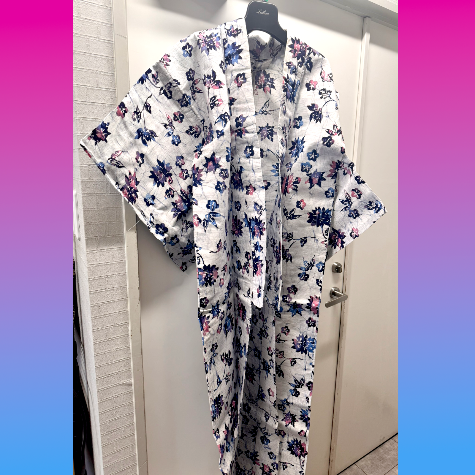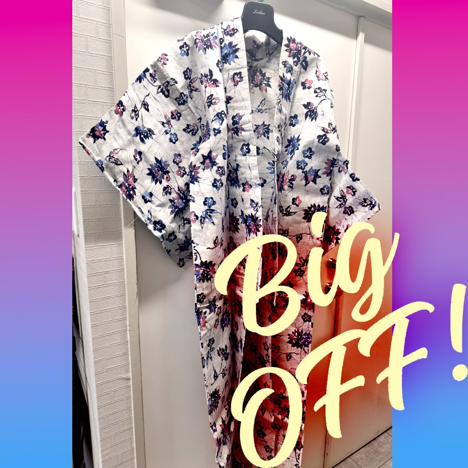 昭和 平成 和装 浴衣 白 藍色 ピンク グラデーション 花柄 もみじ柄 着物 リサイクル着物 アンティーク着物 中古着物 ⑤管2025010364