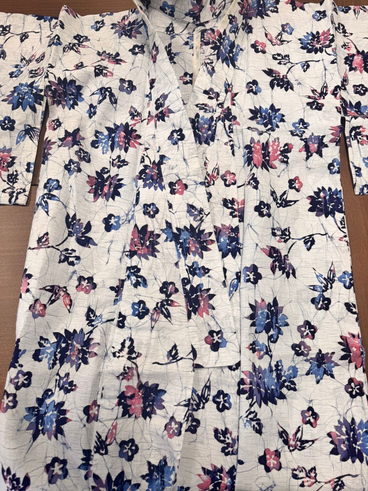 白地に花(もみじ?)の全体柄のアンティークの浴衣です。