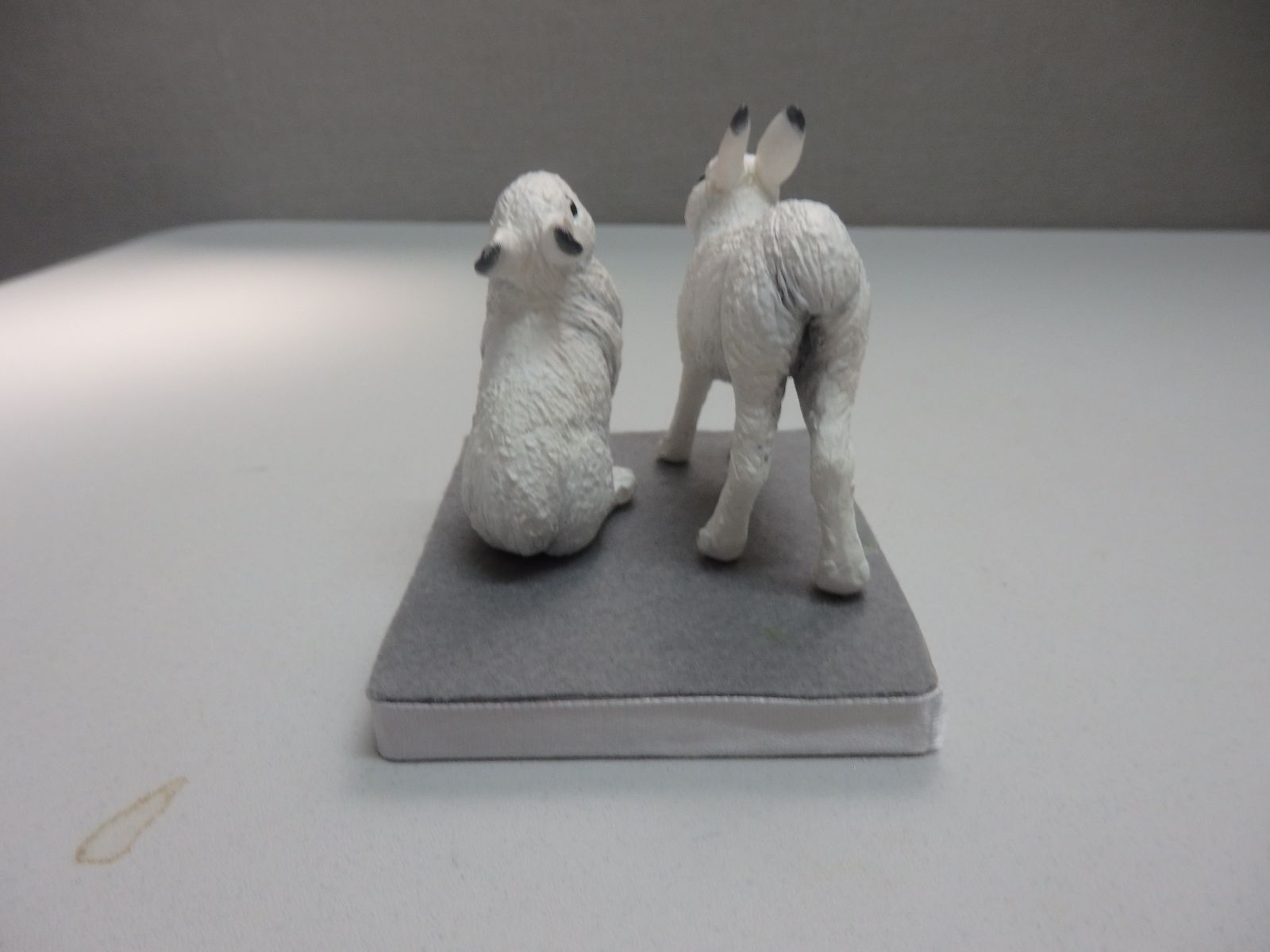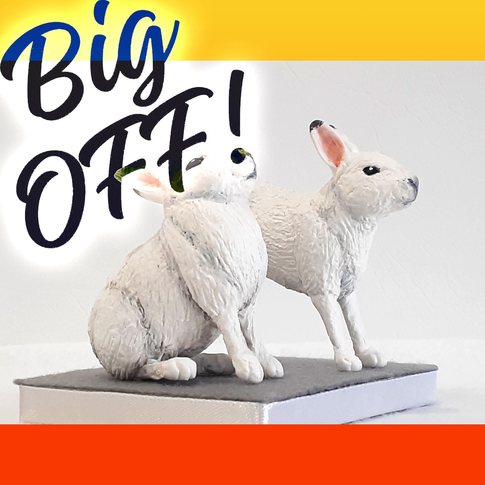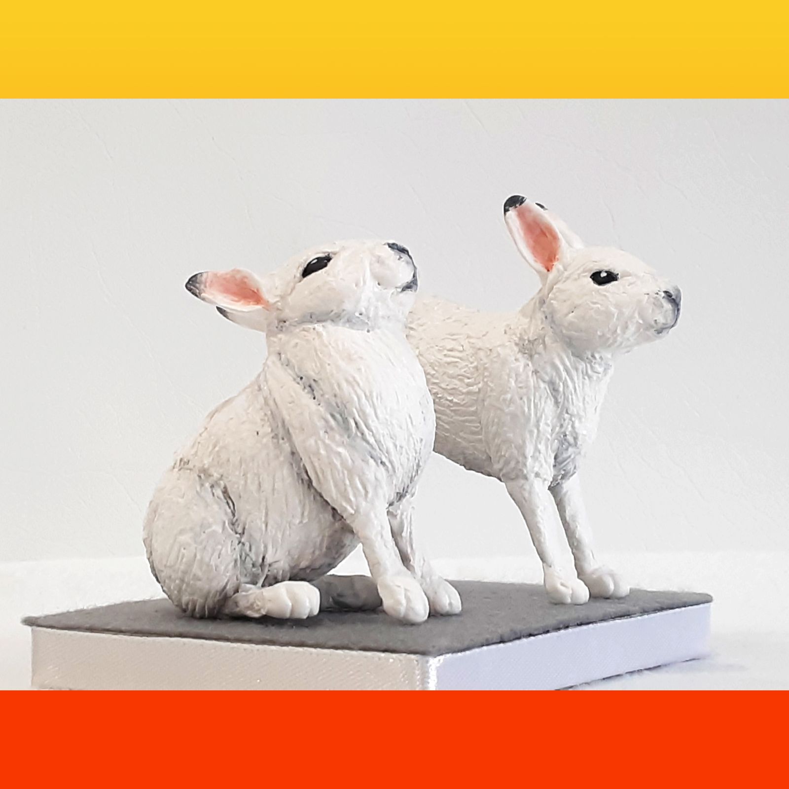 【新品・一点物】NZ-07ハンドメイド 粘土細工 エゾユキウサギ 双子2体 新品 台座付 管 2024060165