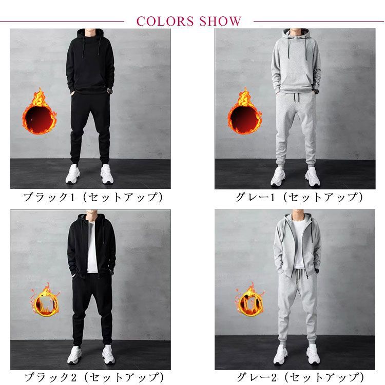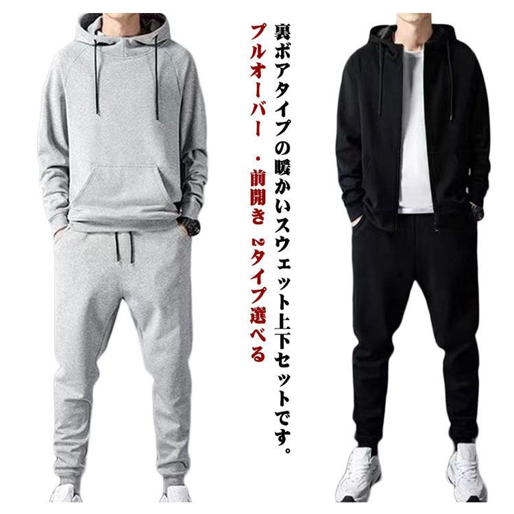 裏ボアタイプの暖かいスウェット上下セットです。プルオーバー ・前開き 2タイプ選べる