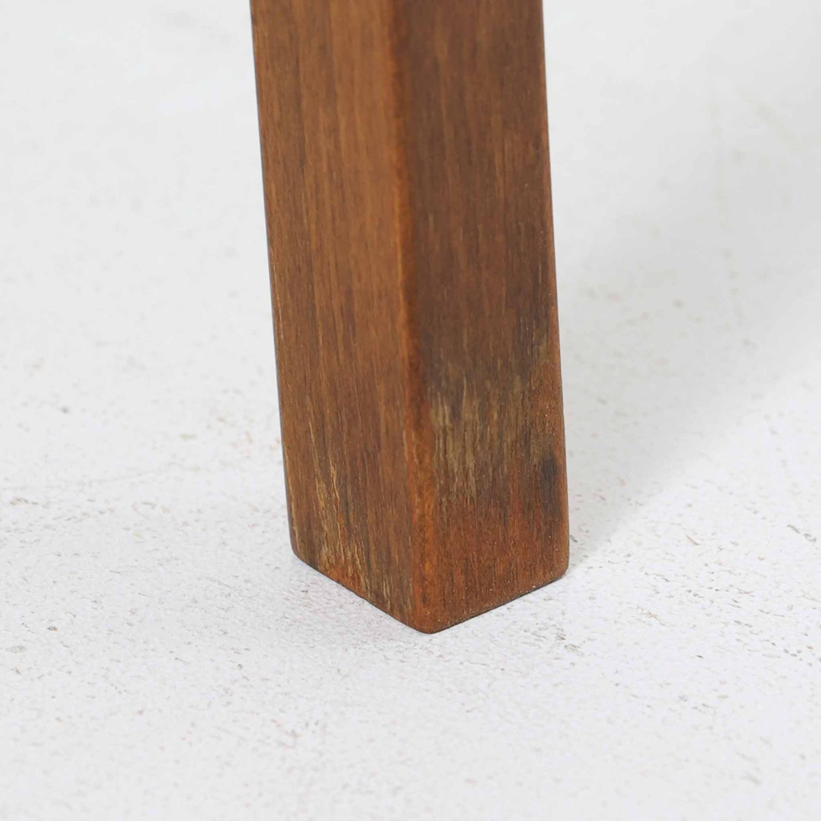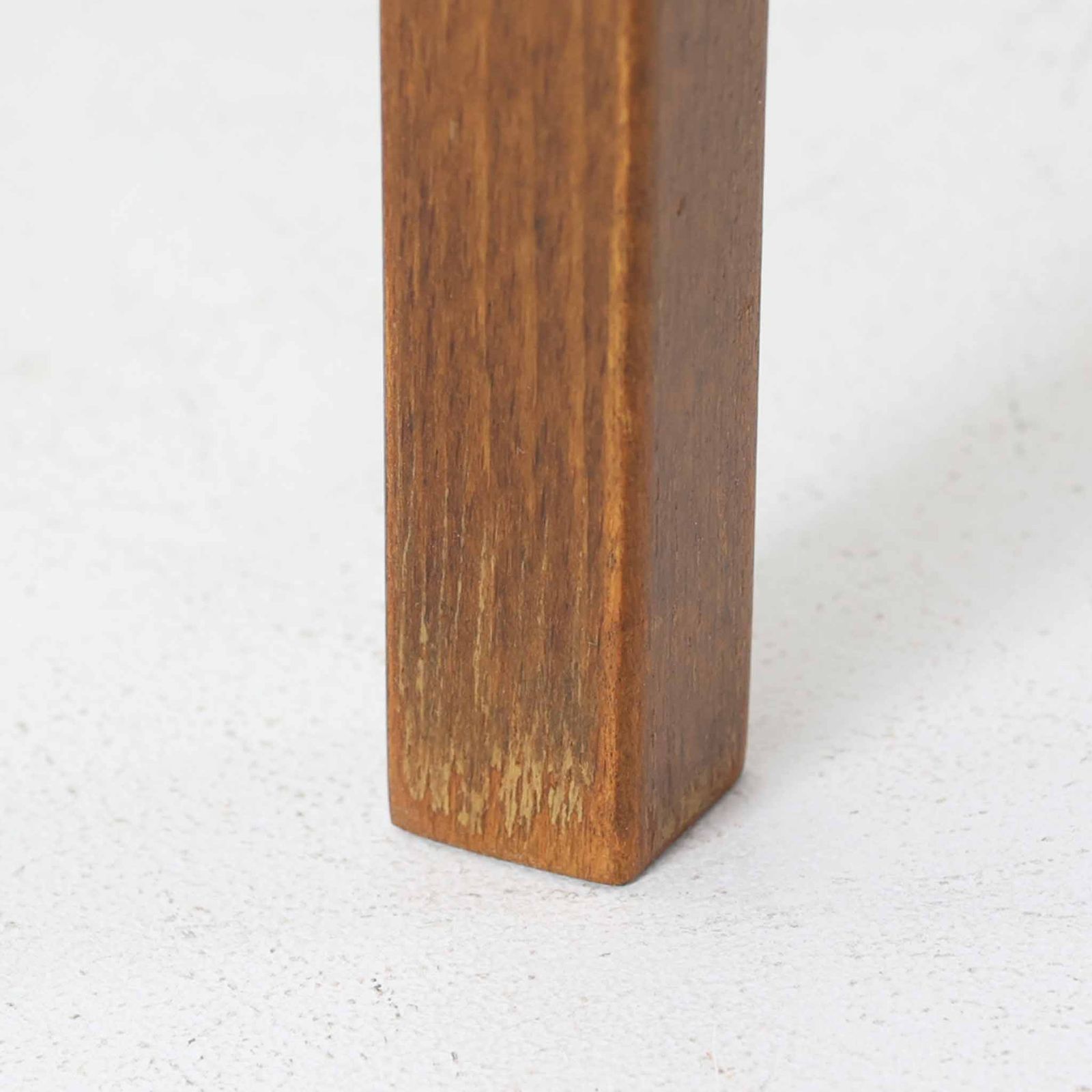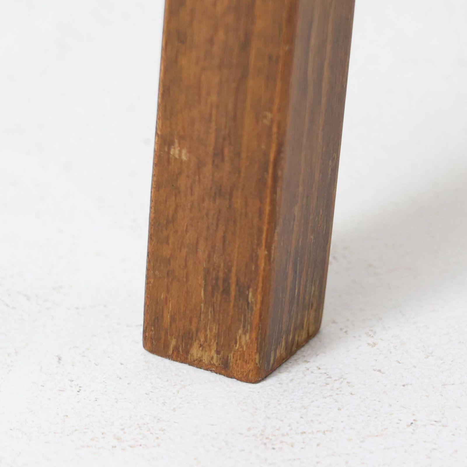 使用には問題ございませんが、オリジナルの脚の取り付け金具に割れが見られます。脚部のラッカー塗装には経年による劣化があり、その他の木部にも細かな傷が見られます。メンテナンスを行っておりますので、ビンテージ品としては良好な状態です。