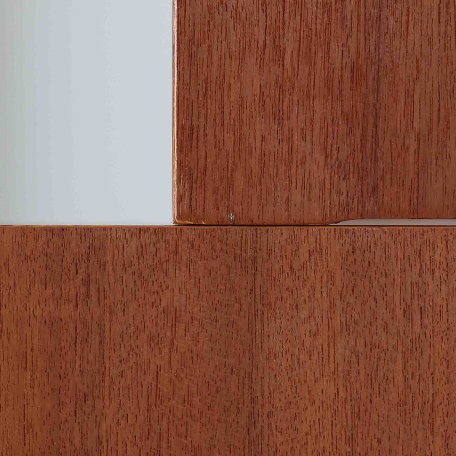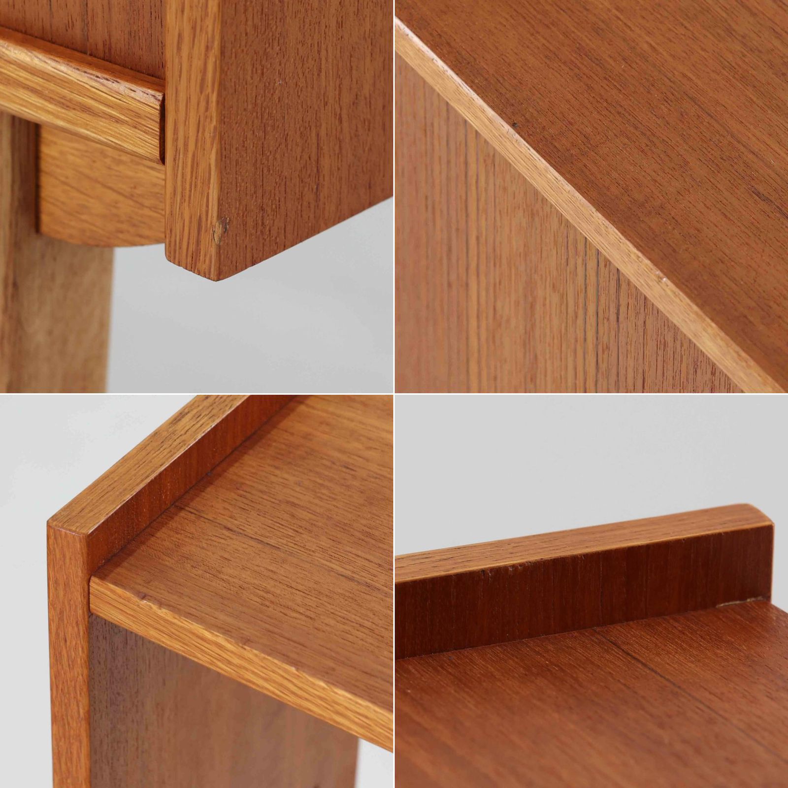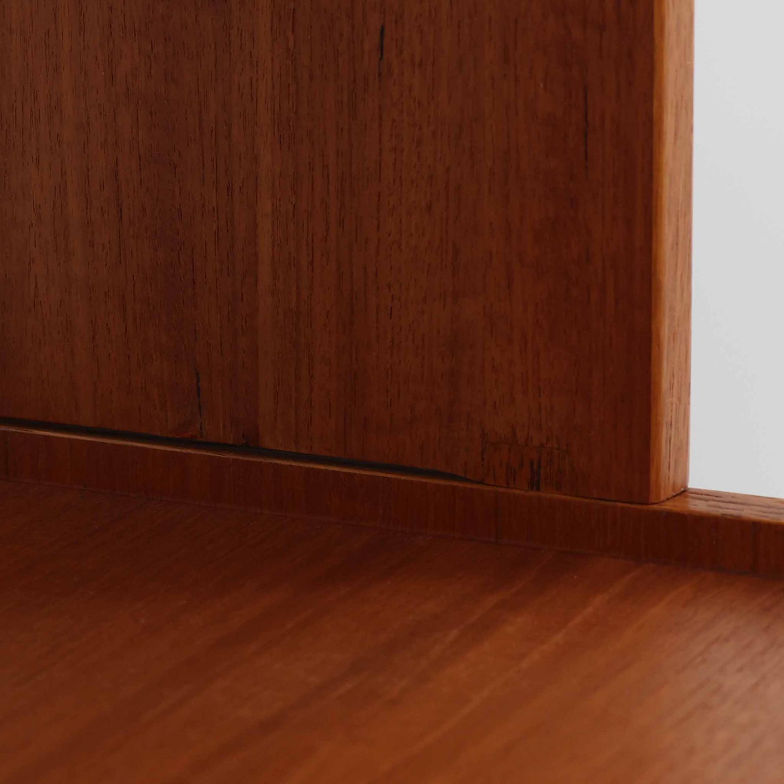 木部には傷や突板の修理跡があり、棚板の設置箇所には色ヤケが見られます。また、棚板裏面には焦げ跡があり、引き戸を閉じた際にわずかな隙間が生じます。メンテナンスを行っておりますので、ビンテージ品としては良好な状態です。