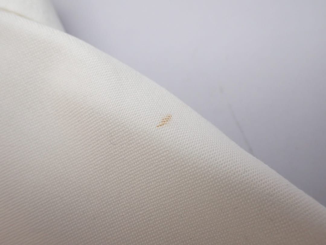 ◆コメント:クリーニング済。使用に伴う痕跡=【全体にやや黄ばみ感。袖口や襟ぐりなどに黄ばみ汚れ。所々にシミ汚れ】などがあります(画像でもご確認ください)