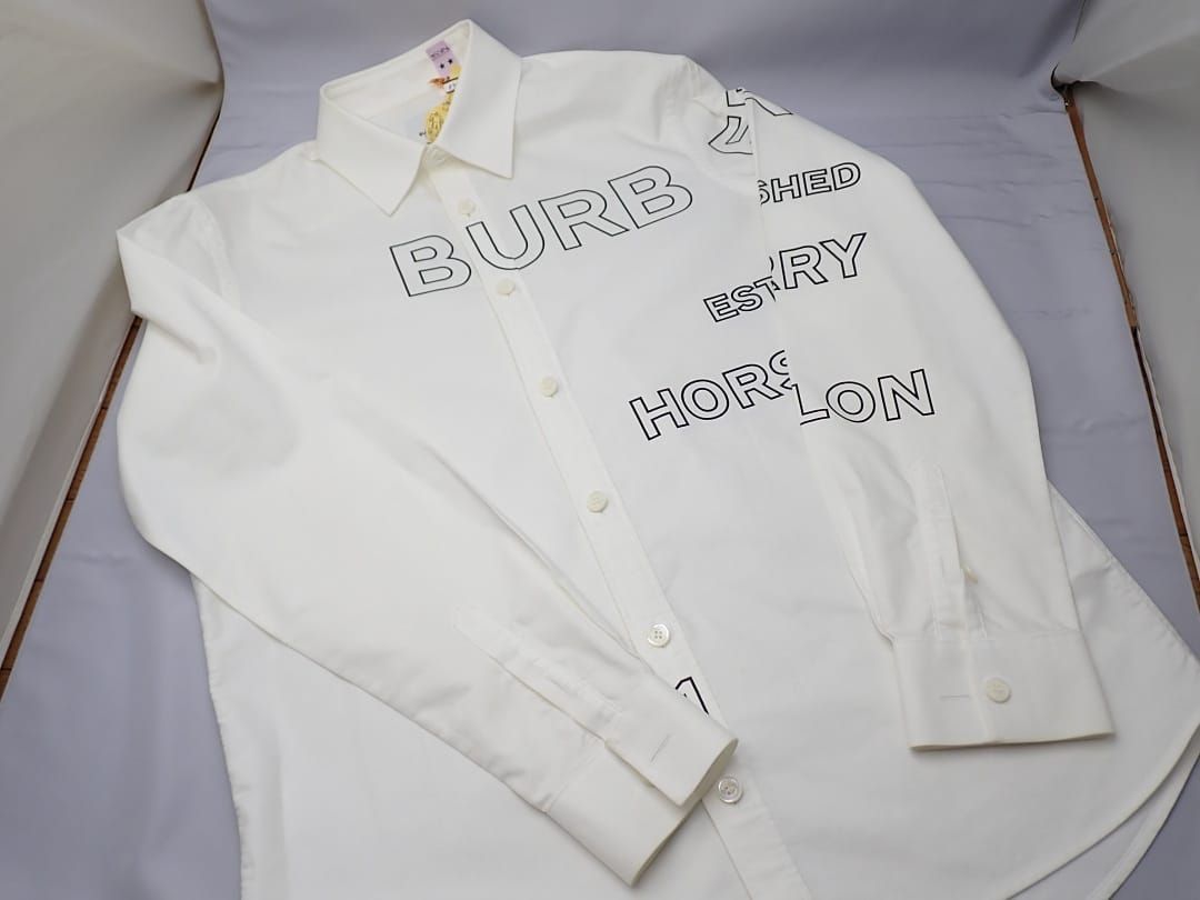 ◆商品名:BURBERRY バーバリー ホースフェリーシャツ XS TP 長袖 コットン ホワイト 8036768/71B ロゴプリント 中古B+ 【送料無料】