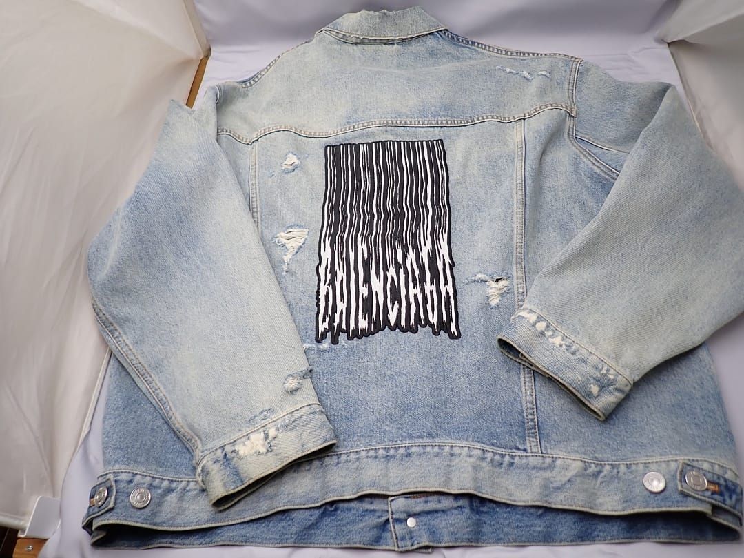 ◆商品名:BALENCIAGA バレンシアガ デニム ジャケット オーバーサイズ Gジャン S 664329-TBP48 21AW バックバーコード刺繍ラージフィット 中古B 【送料無料】