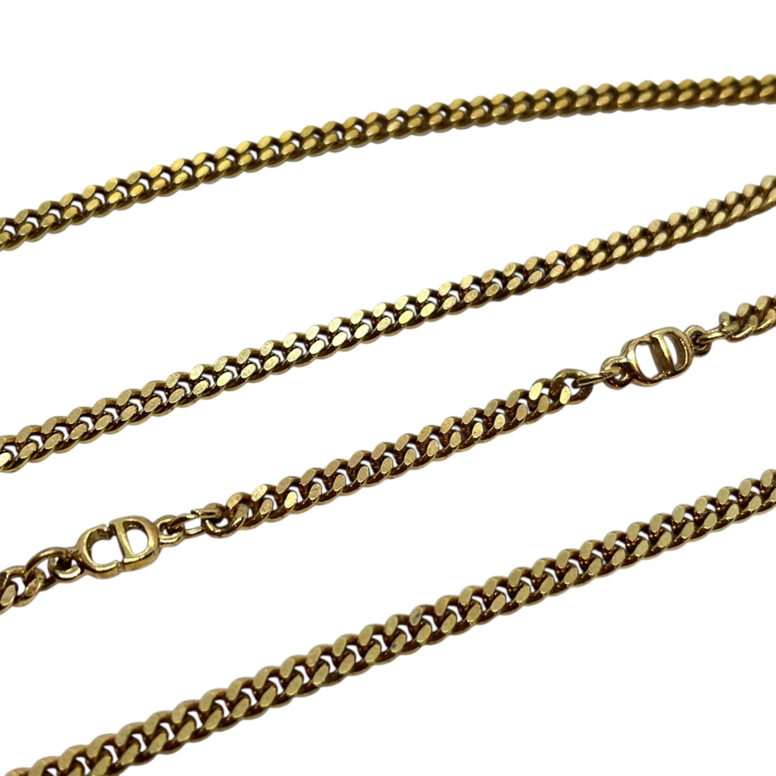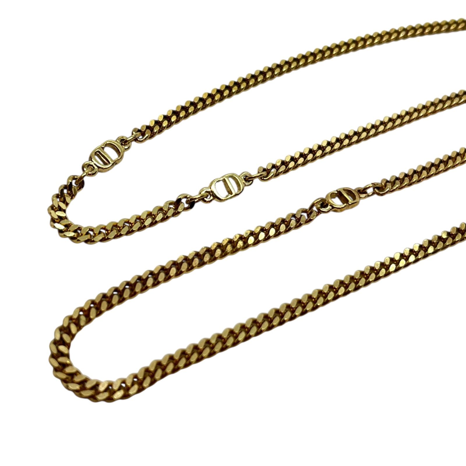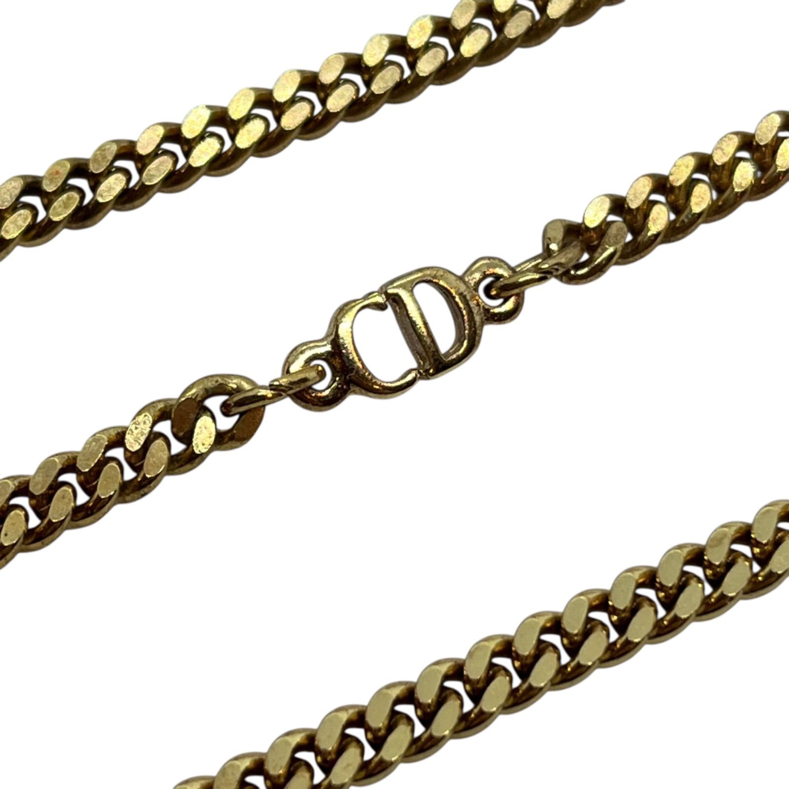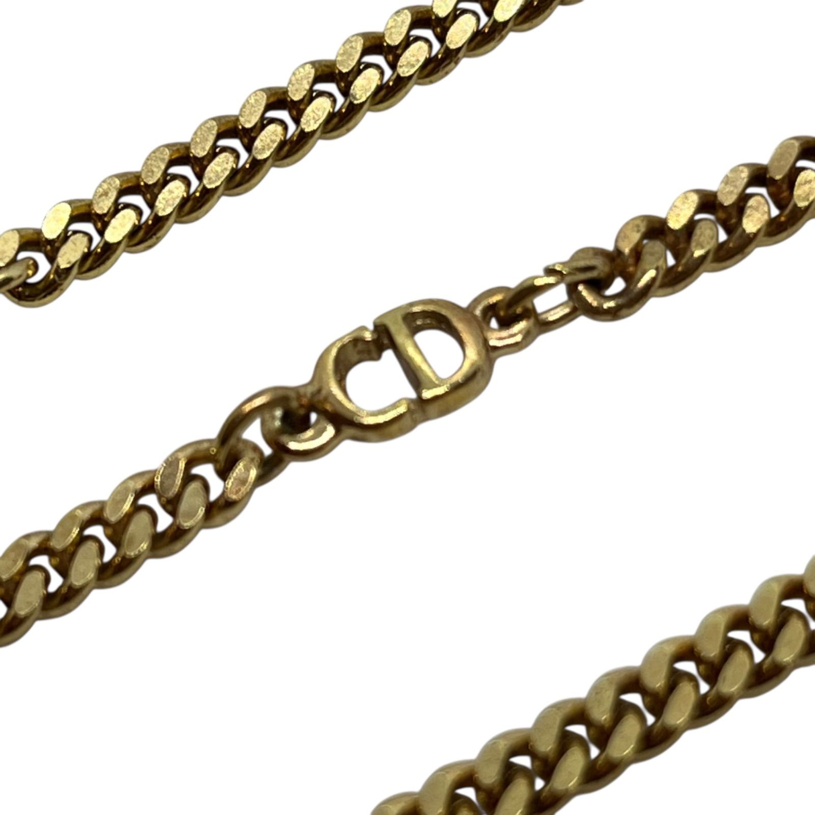Christian Dior クリスチャンディオール チェーンネックレス 喜平 CDロゴ ゴールドトーン メッキ ヴィンテージ
