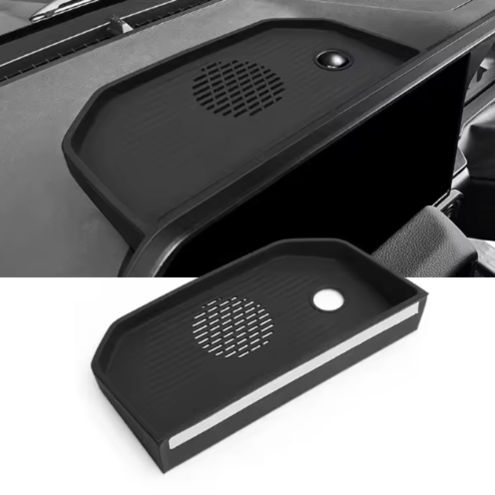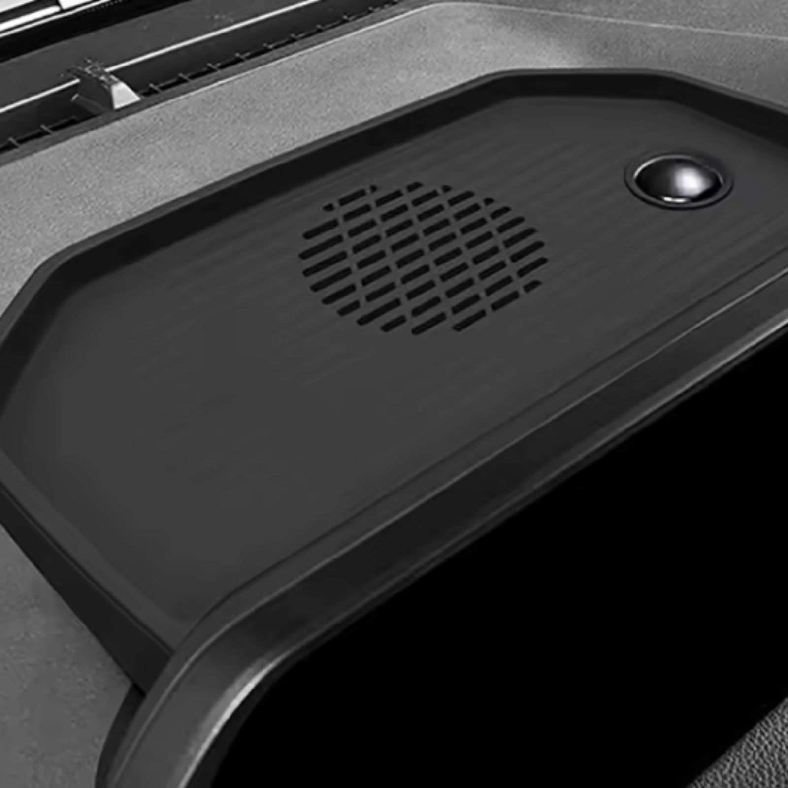 新型ランドクルーザー250のインテリアをアップデートする専用ダッシュボードトレイです。ナビ画面の裏側にあるスペースに設置することで、スマホや鍵、駐車券などを置くのに便利な収納スペースが生まれます。シリコン製で、滑り止め効果が高く、走行中の小物の落下や異音を防ぎます。汚れても水洗いできるため、メンテナンスも簡単です。専用設計ならではのフィット感で、内装に違和感なく馴染みます。