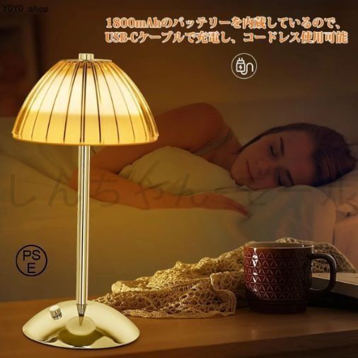 【充電式の卓上ライト】この充電式の卓上ライトは1800mAhのバッテリーを内蔵し、USB-Cケーブルで充電し、消費電力少なく、省エネな卓上ライトです。満充電の状態で約12H(最低輝度で)継続してご利用いただけます。間接照明が電池を内蔵しているので、コードレス使用可能。家の中のどこにでも置いて素敵です。