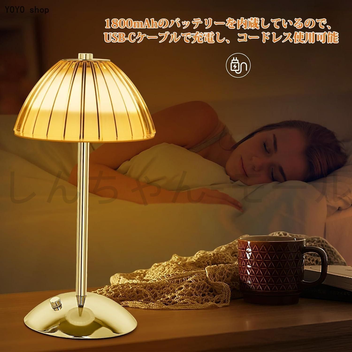 テーブルランプ 充電式 ベッドサイドランプ コードレス 3色光 無階段調光 おしゃれ 電気スタンド 卓上ライト 置き型 間接照明 スタンドライト 寝室照明