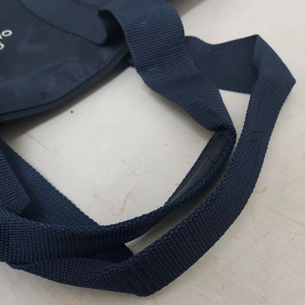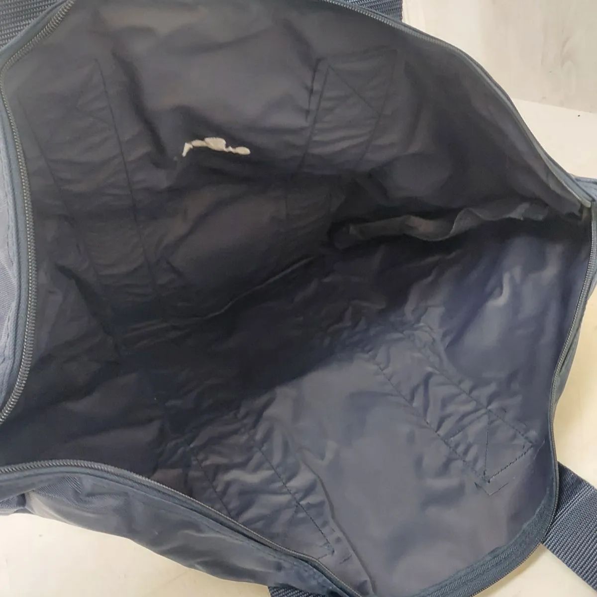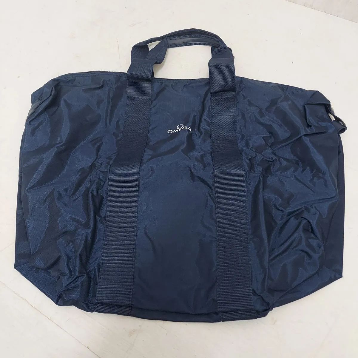 ロゴが刺繍されていて、ボストンバッグを折りたたんでポーチに収納できます!