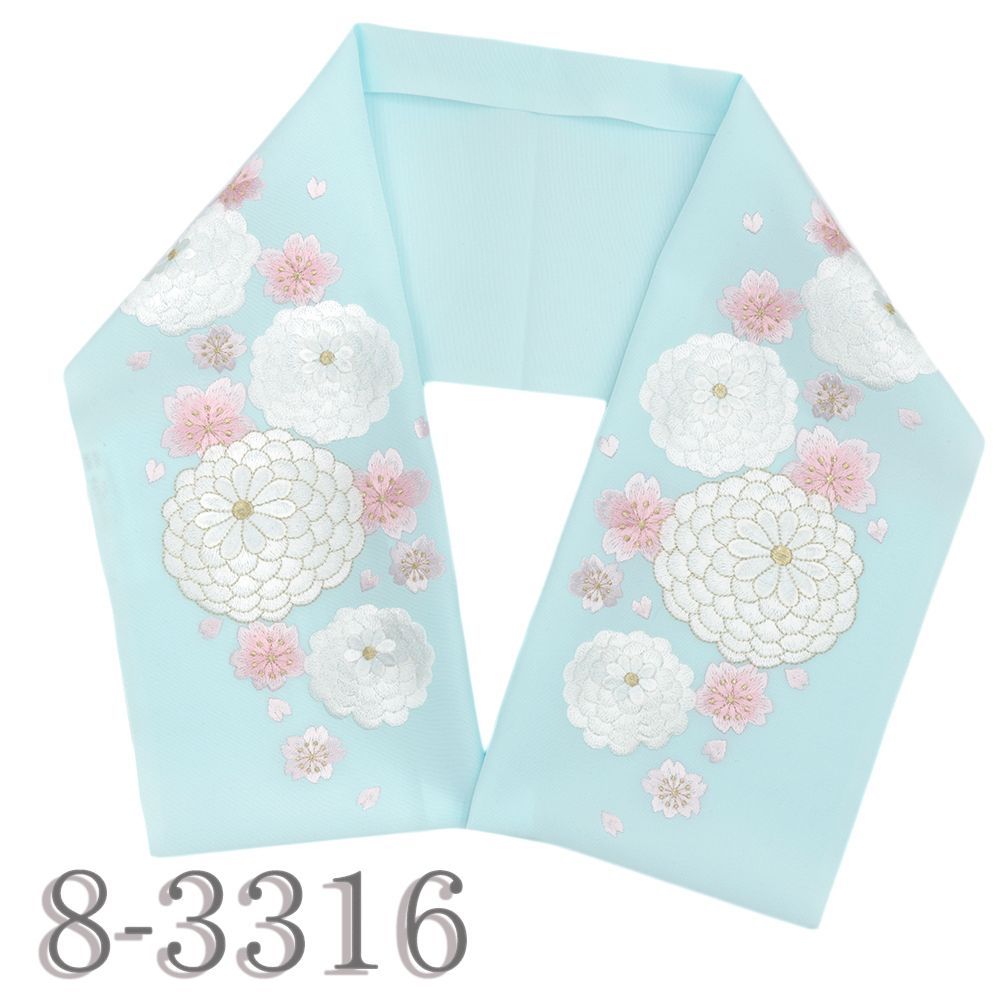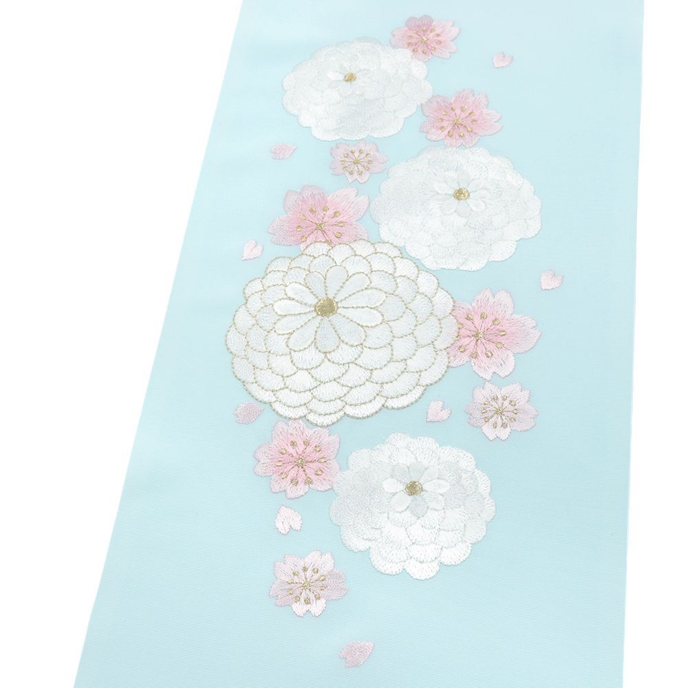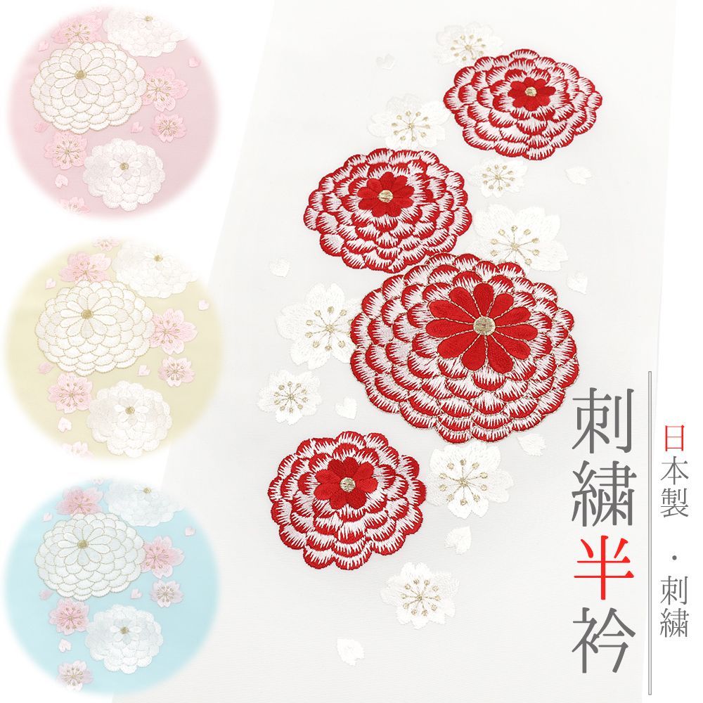 半衿 半襟 振袖 成人式 豪華刺繍 花 菊 桜 黄色 ピンク 水色 白 赤 金糸 おしゃれ半衿 刺繍半衿 お洒落着用 ポリエステル 日本製 訪問着 No.wk-haneri-0035