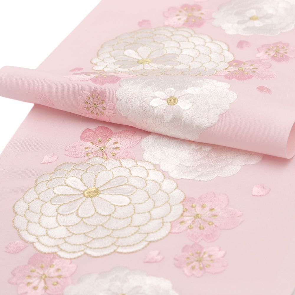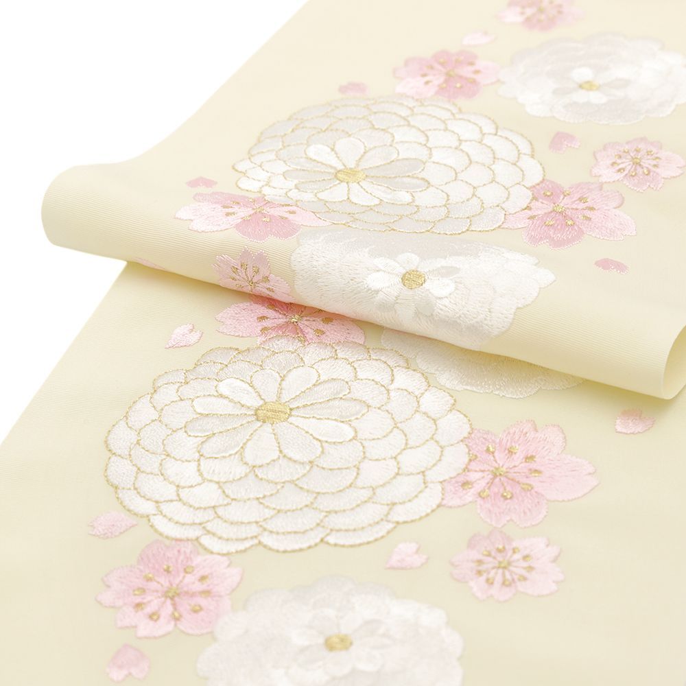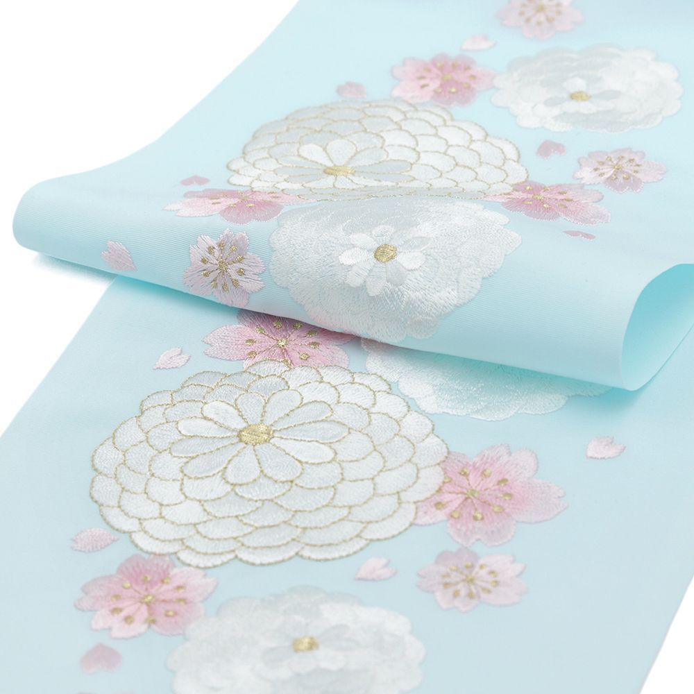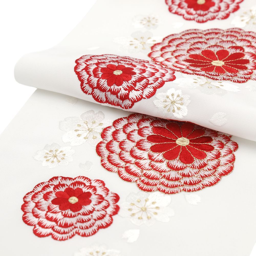 半衿 半襟 振袖 成人式 豪華刺繍 花 菊 桜 黄色 ピンク 水色 白 赤 金糸 おしゃれ半衿 刺繍半衿 お洒落着用 ポリエステル 日本製 訪問着 No.wk-haneri-0035