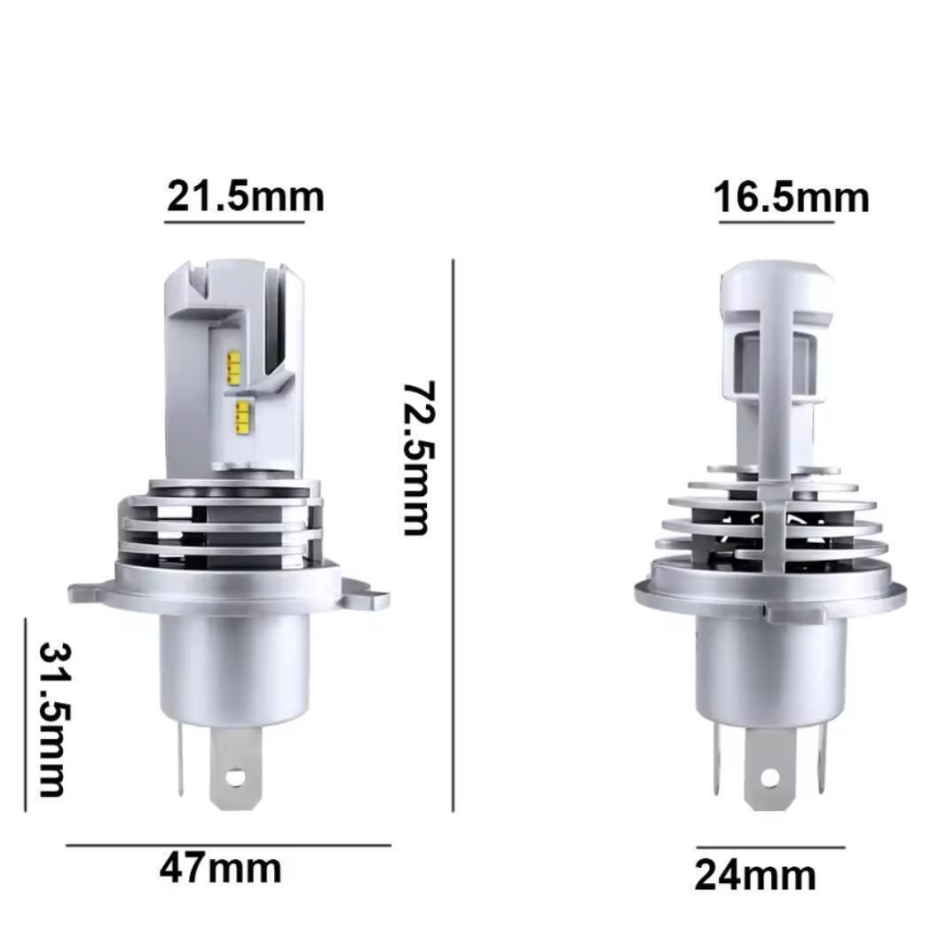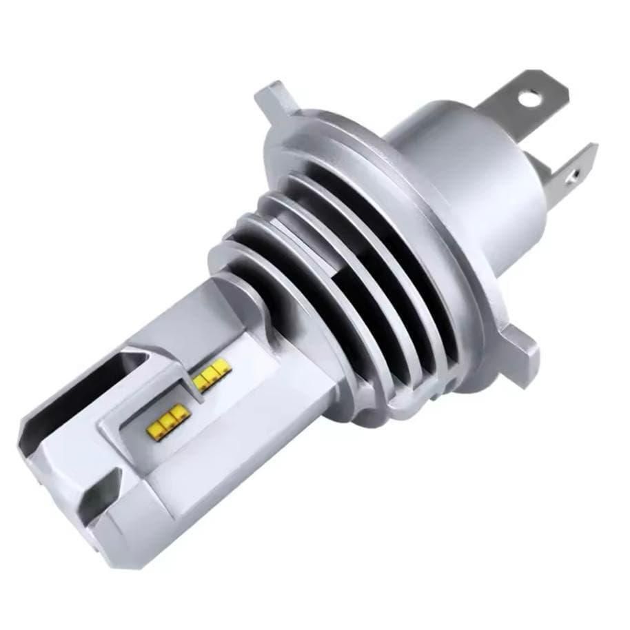 H4 LEDヘッドライトバルブです。視認性の高い6000Kホワイト光と、純正ハロゲンと同様の美しいカットライン設計で、新基準車検対応です。冷却ファン内蔵で放熱性にも優れ、長時間点灯しても明るさを維持します。グレア光を抑えた安心設計です。