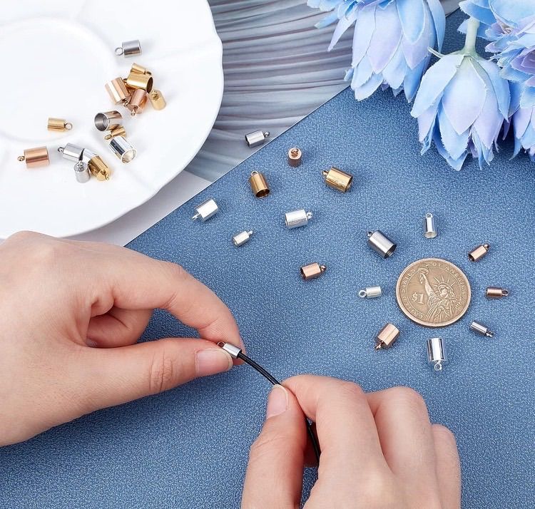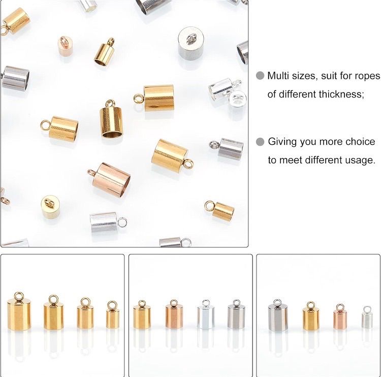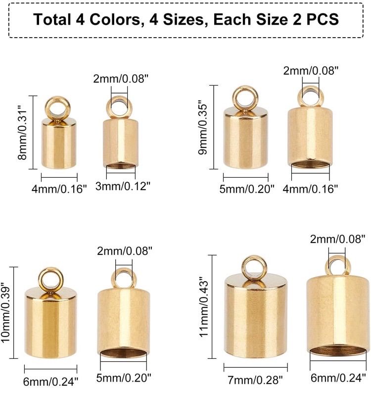 コラムコードエンド:長さ約8-11mm, 約4-7 mm幅, 穴:1.8~3mm, 内径:3- 5ミリメートル