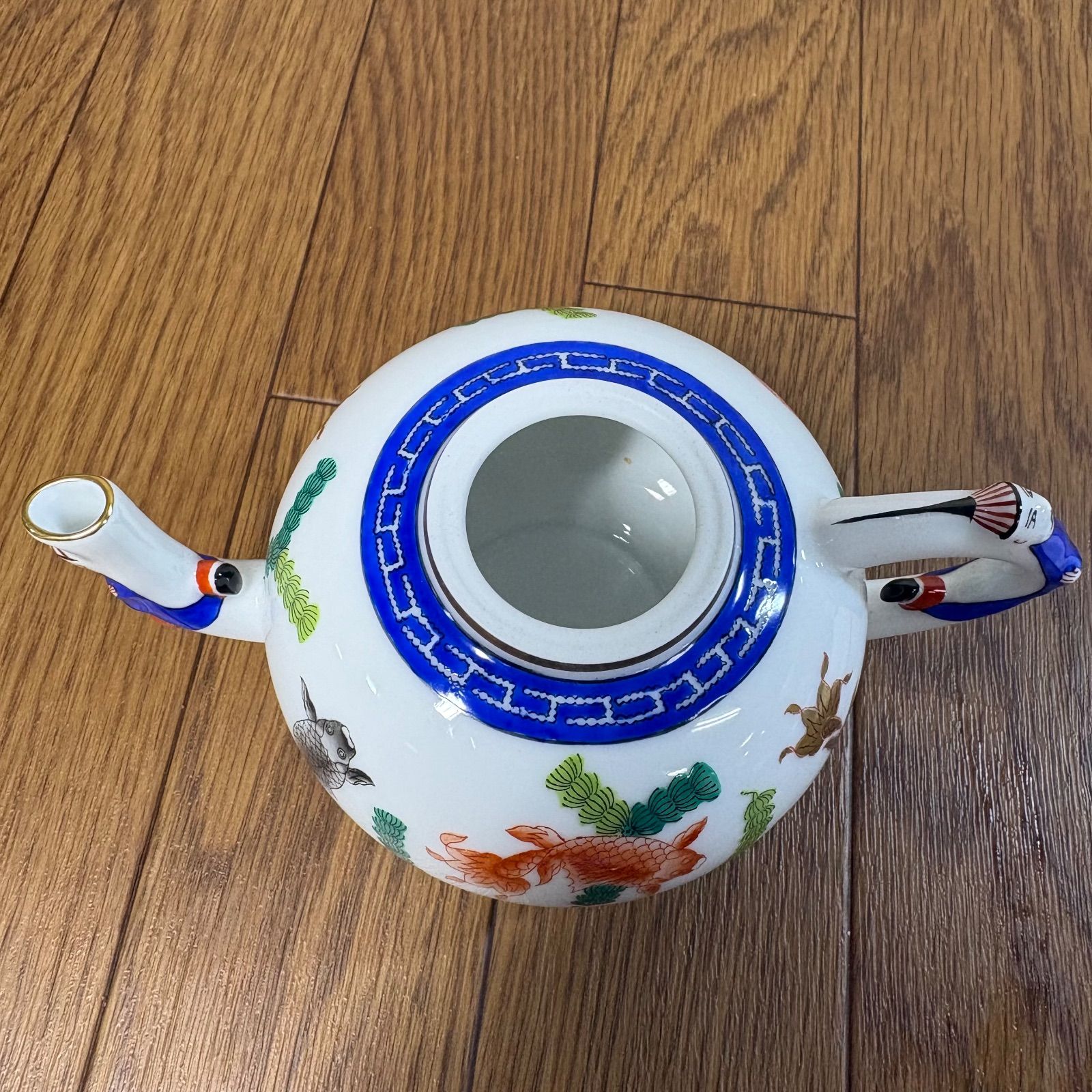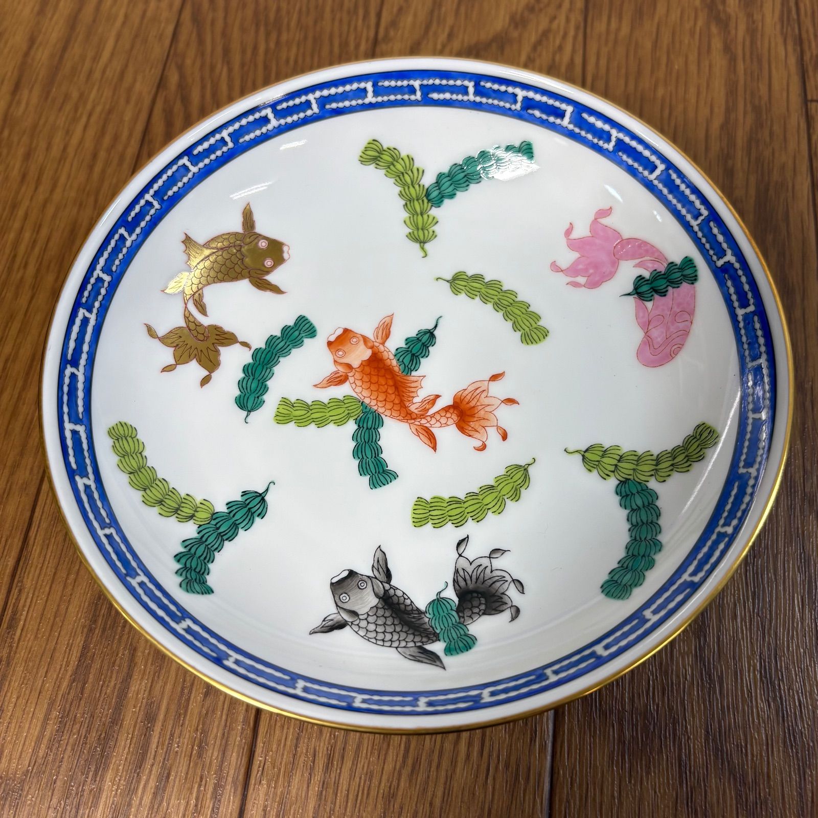 鯉と金魚がアレンジされた「魚藻文」は古くから中国に伝わるモチーフで、子孫繁栄を意味する吉祥文です。1850年代に発表され、今ではヘレンドのシノワズリシリーズの定番モデルとなっています。