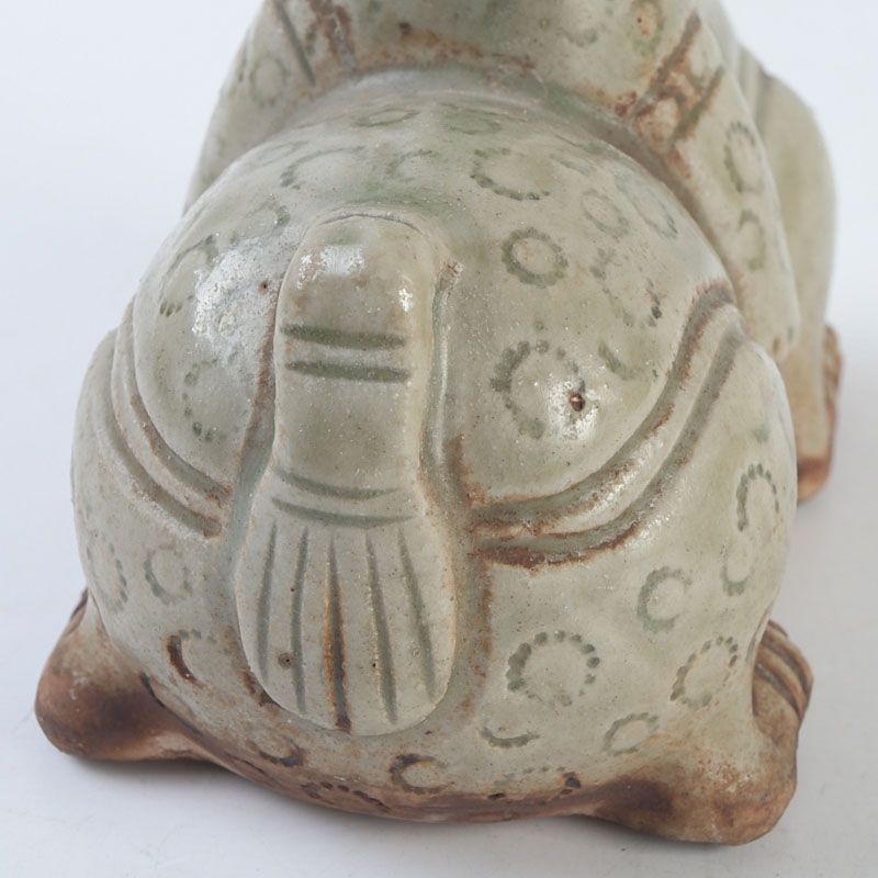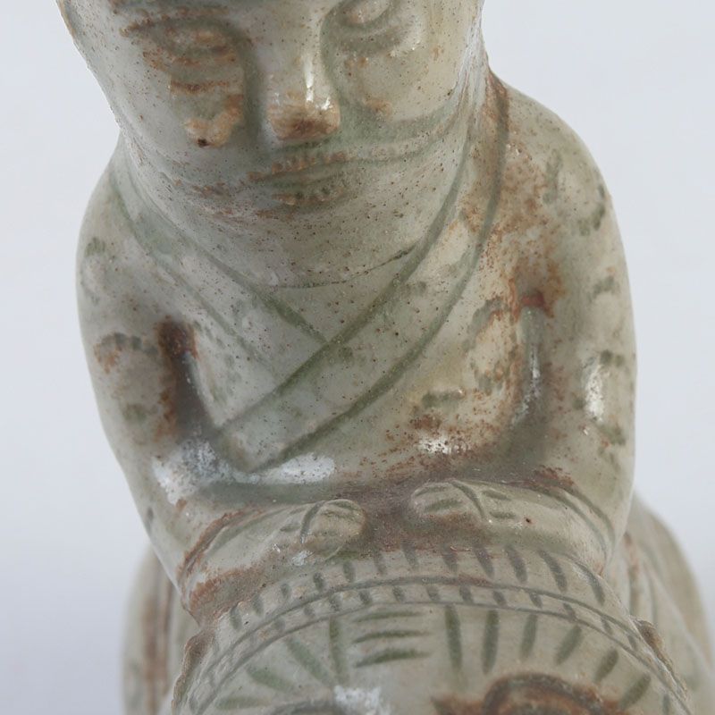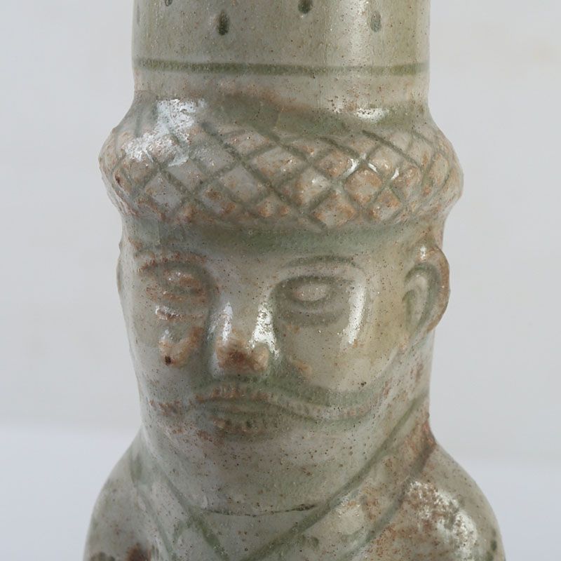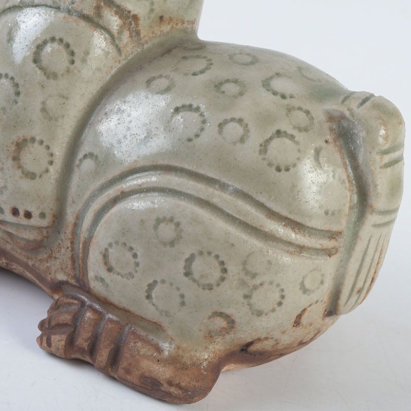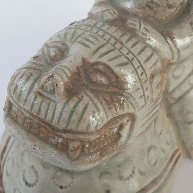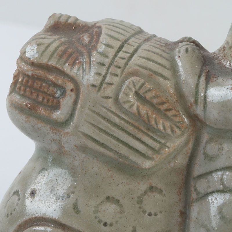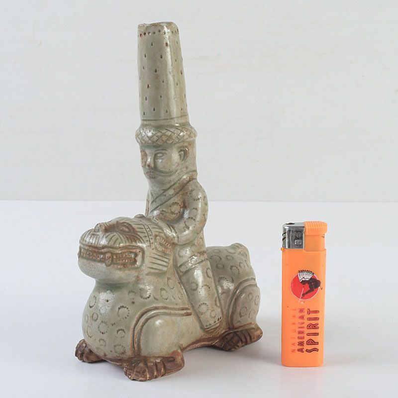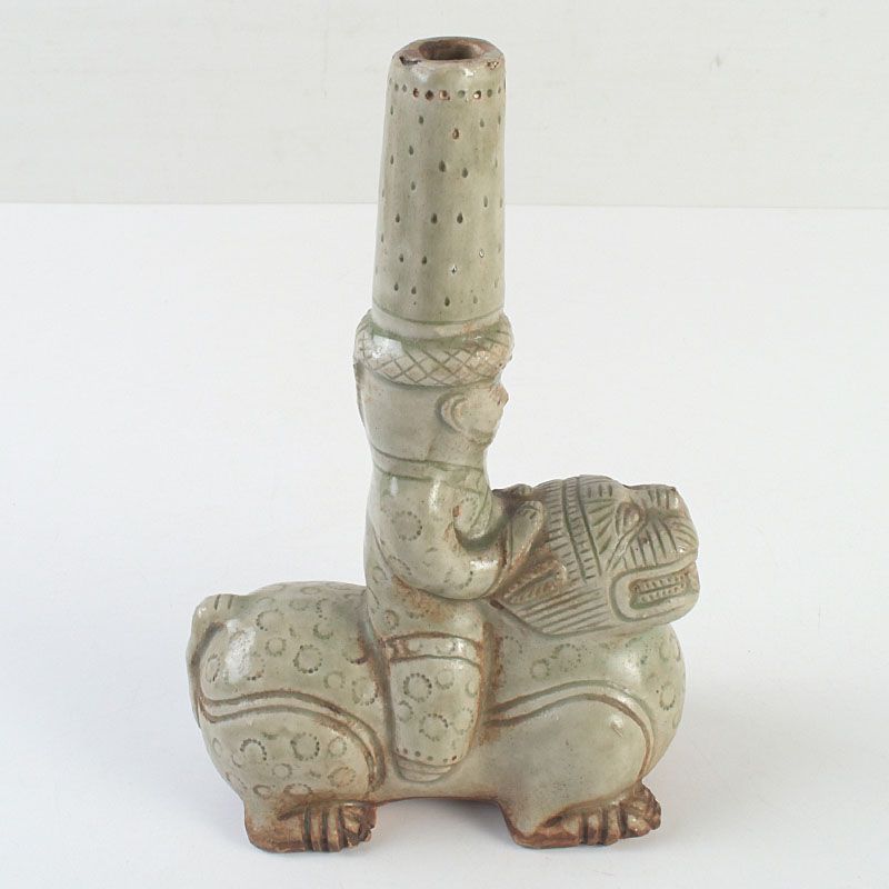 中国 龍泉窯 青磁 神獣人物花入 花器 N S426