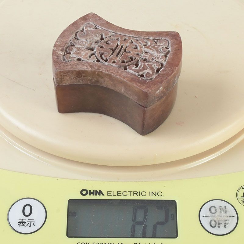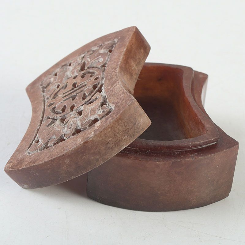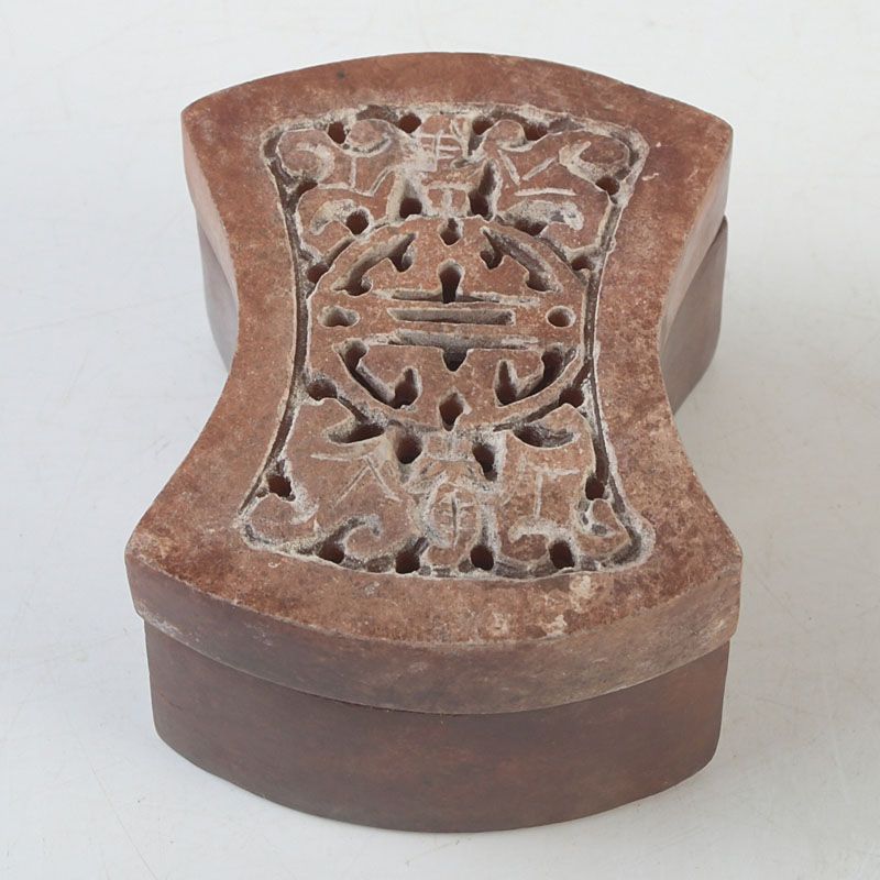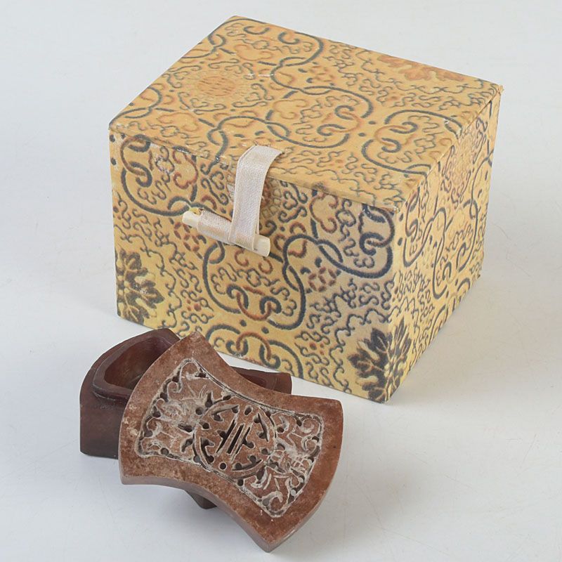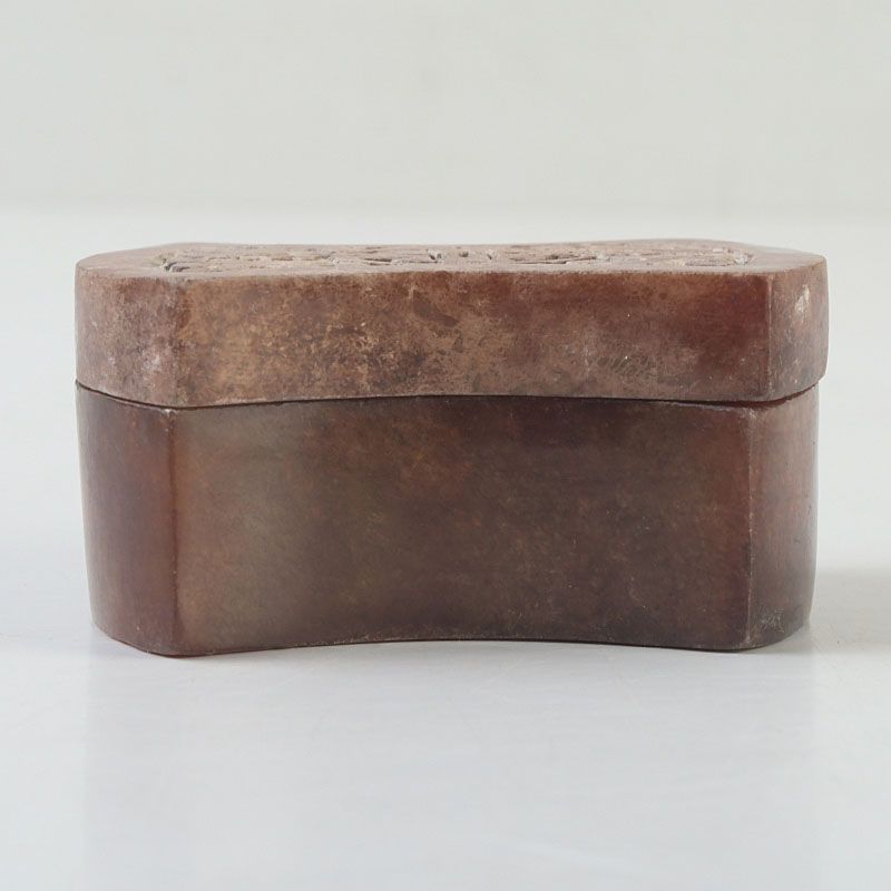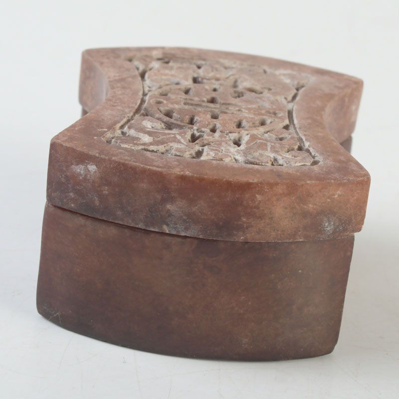 中国 玉石彫刻 透かし彫蝙蝠文 香合 蓋物 箱付 N S430