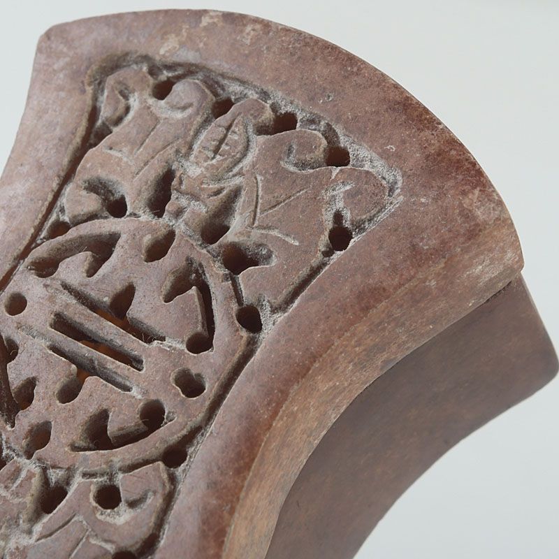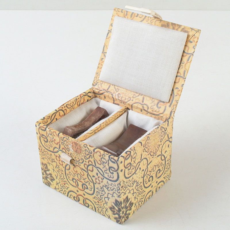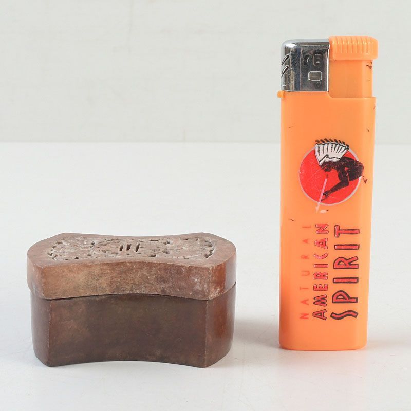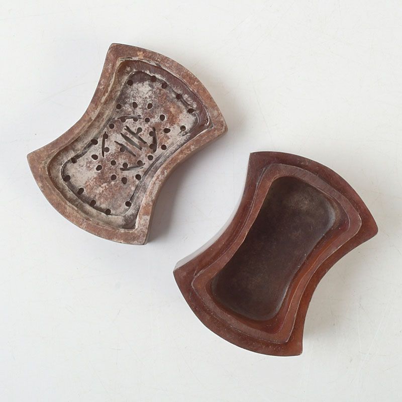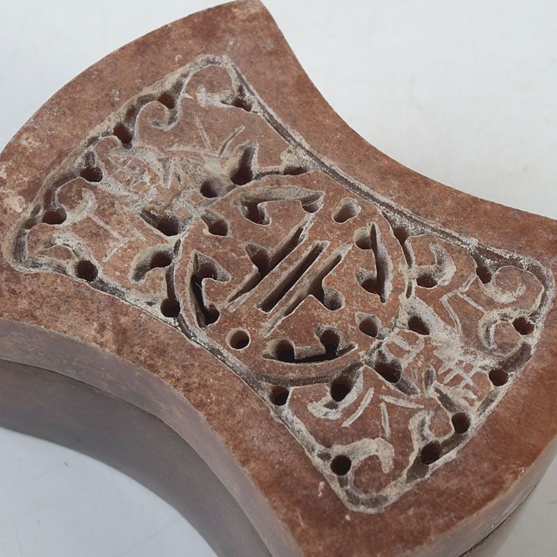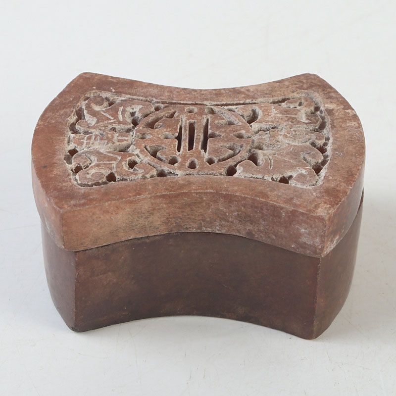 中国 玉石彫刻 透かし彫蝙蝠文 香合 蓋物 箱付 N S430