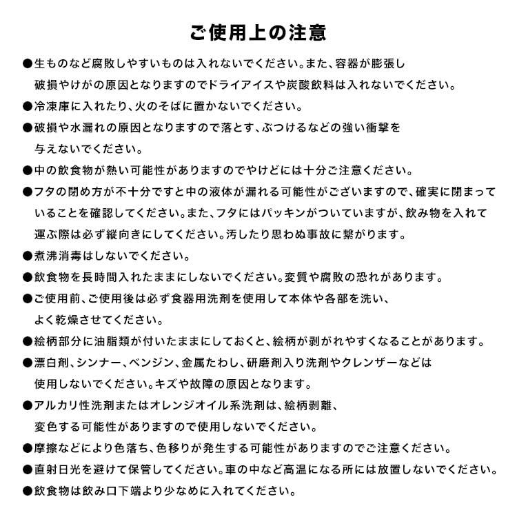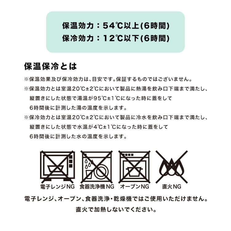 温かいスープやご飯はもちろん、鮮度が大事なサラダやフルーツなどの冷たい食材も持ち運びが可能です。保温効力54度以上(6時間)/保冷効力12度以下(6時間)※電子レンジ、食器洗浄機、オーブン、直火でのご使用はおやめください