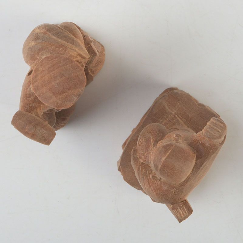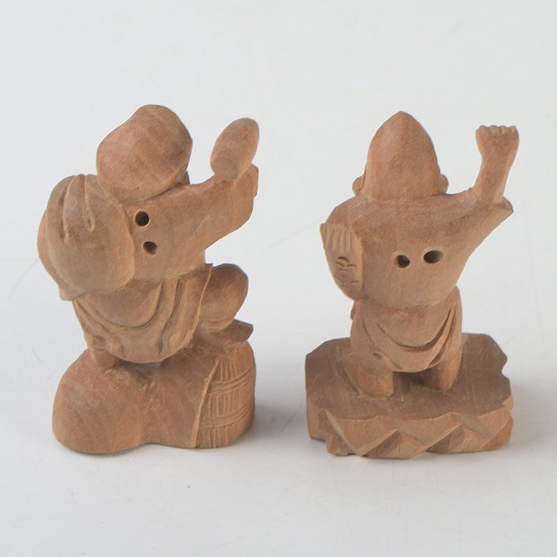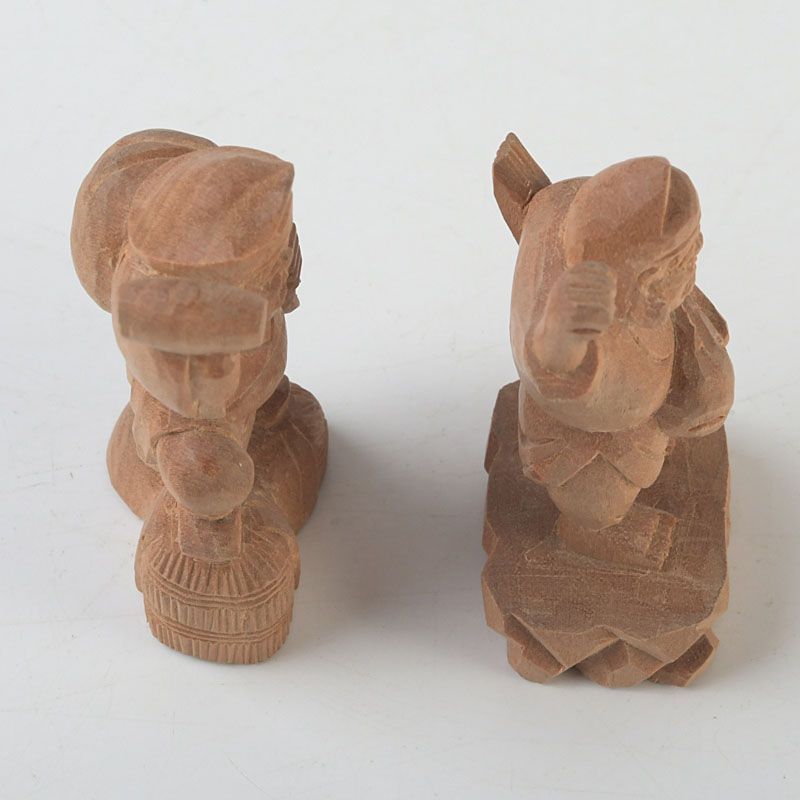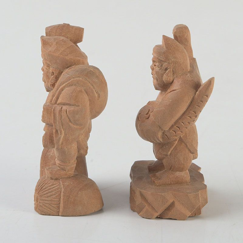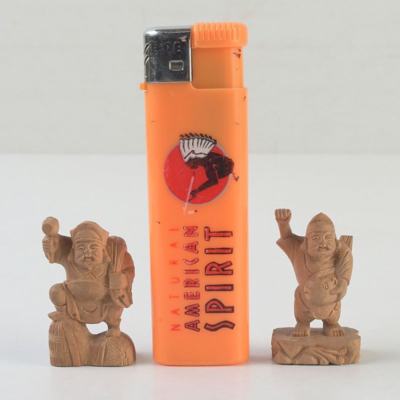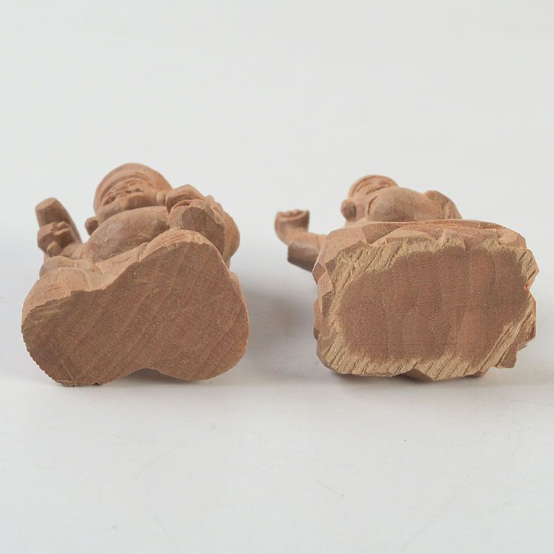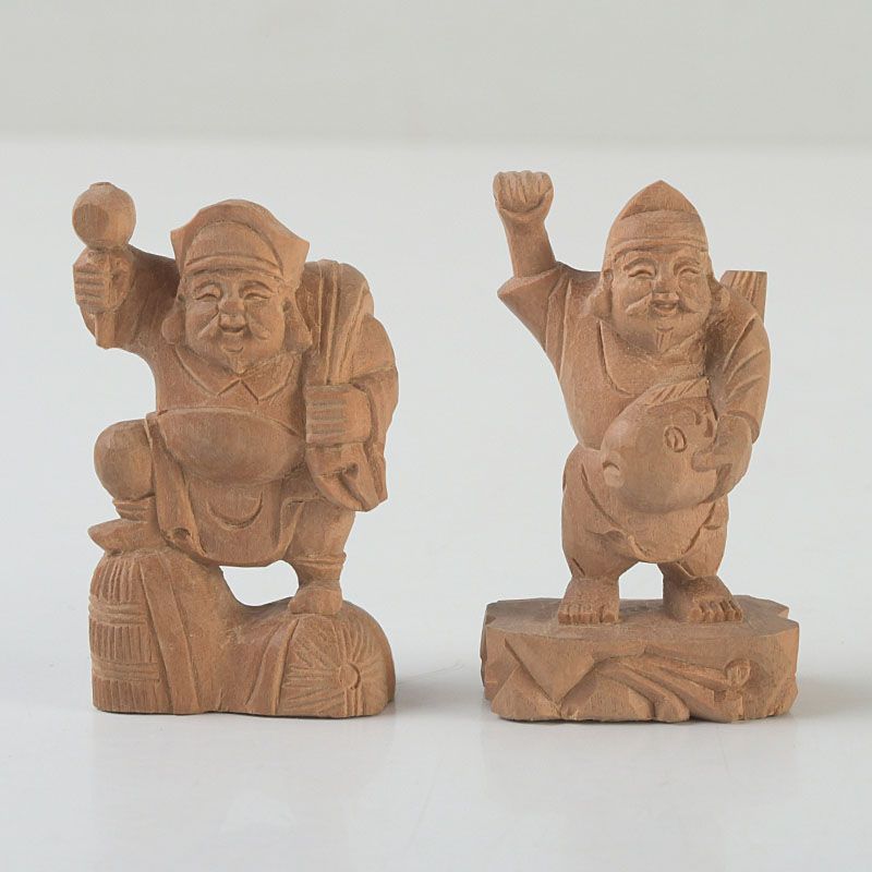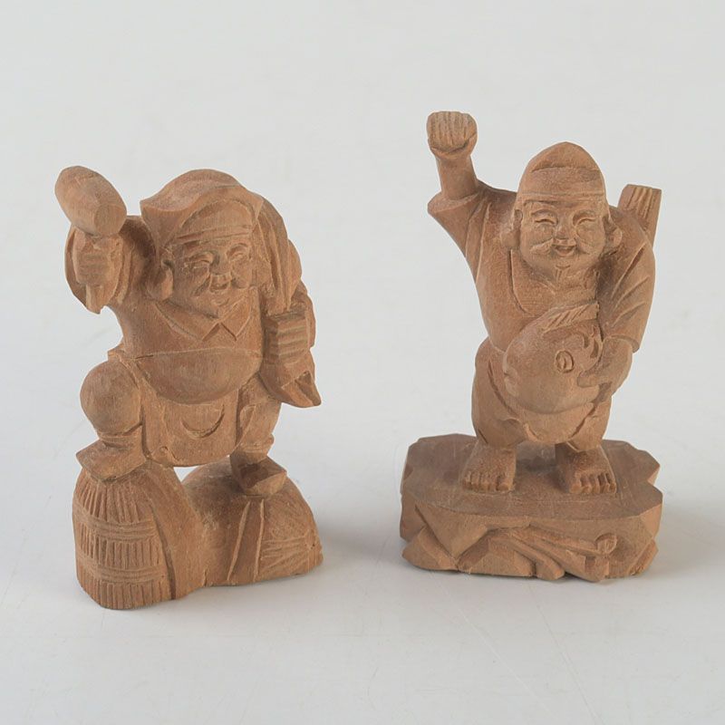 木彫 大黒天・恵比寿像 2点 根付 置物 N S445