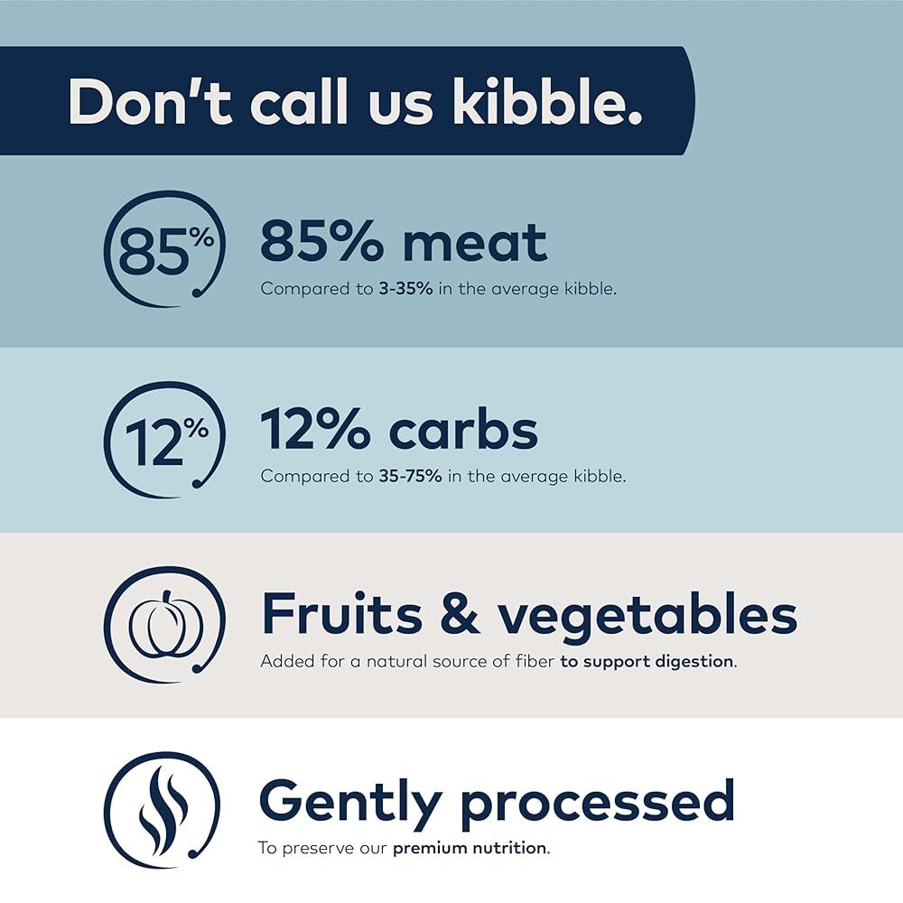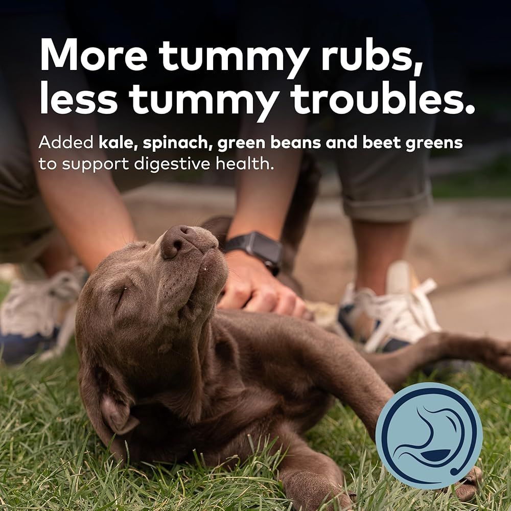 ニュージーランドの緑の牧草地で飼育されたラムの⽣⾁と、消化器系の健康をサポートするほうれん草、ケール、インゲン、チコリールートをブレンドし、作られています。