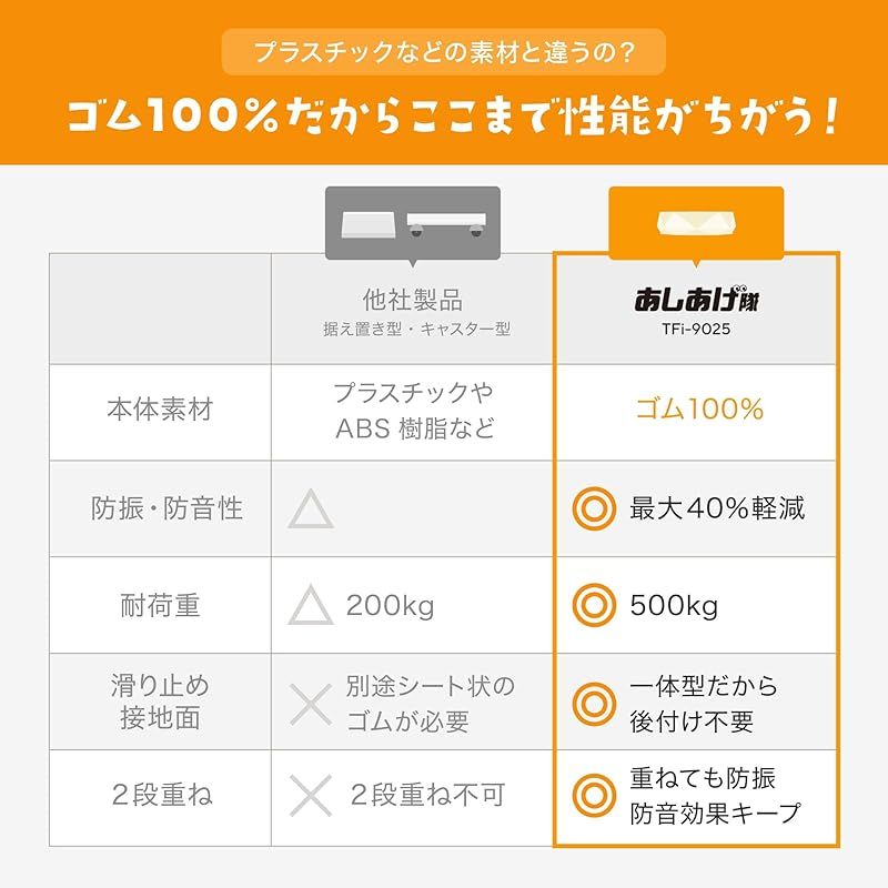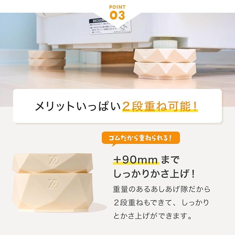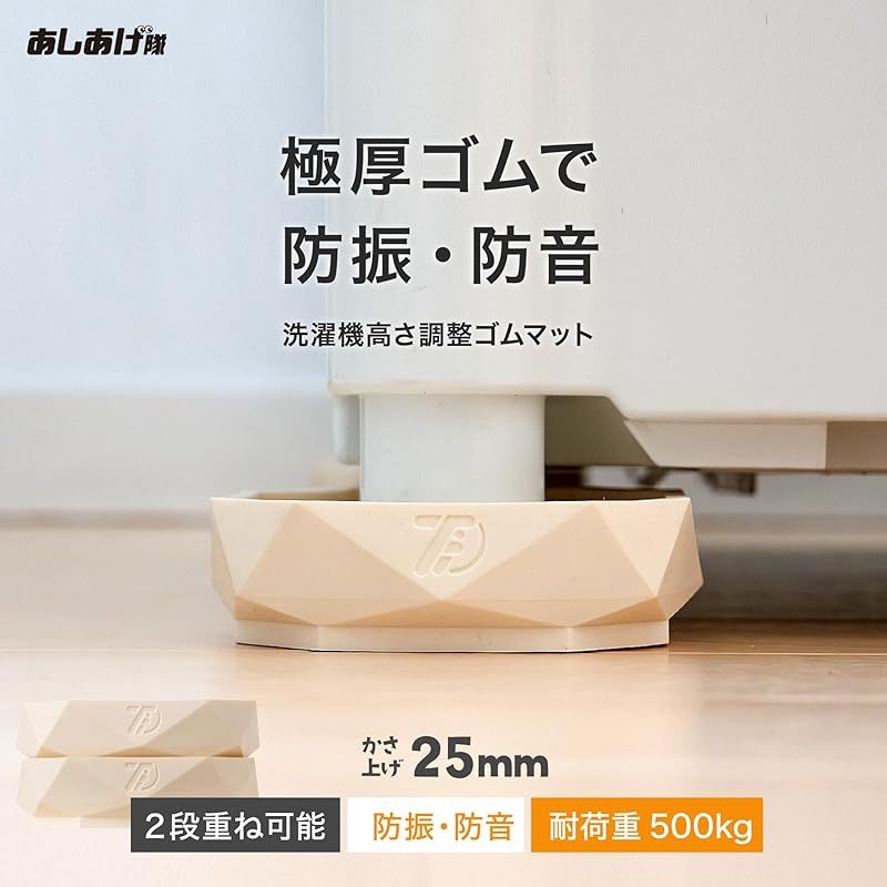 商品名:あしあげ隊 TFi-9025 洗濯機高さ調整ゴムマット 防振・防音 洗濯機かさあげ台 タツフト