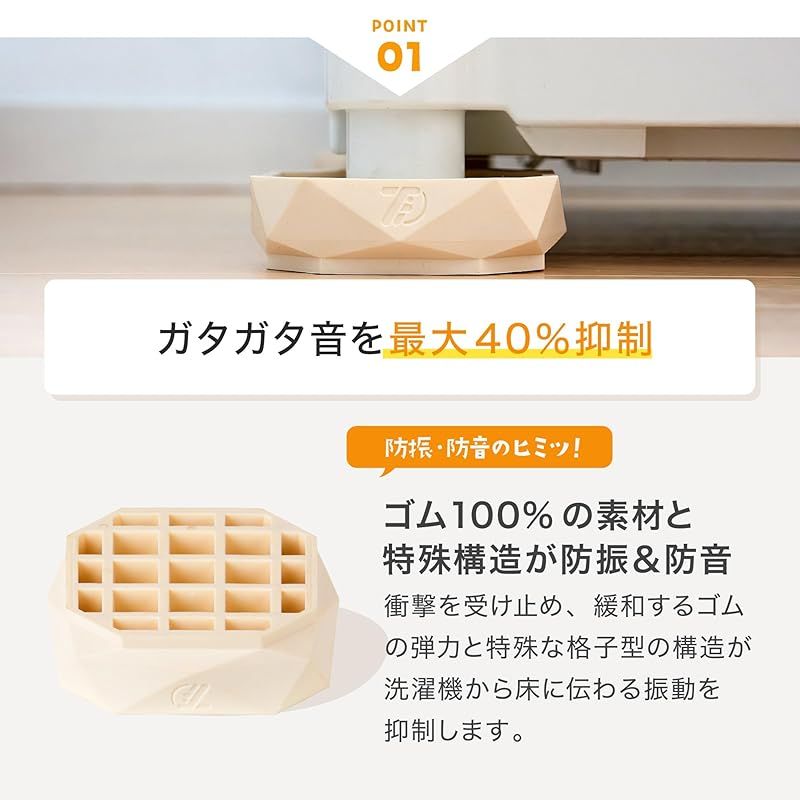 【洗濯機高さ調整・防音/防振かさ上げゴムマット (25)】ゴム製のため、防振・防音効果があります。