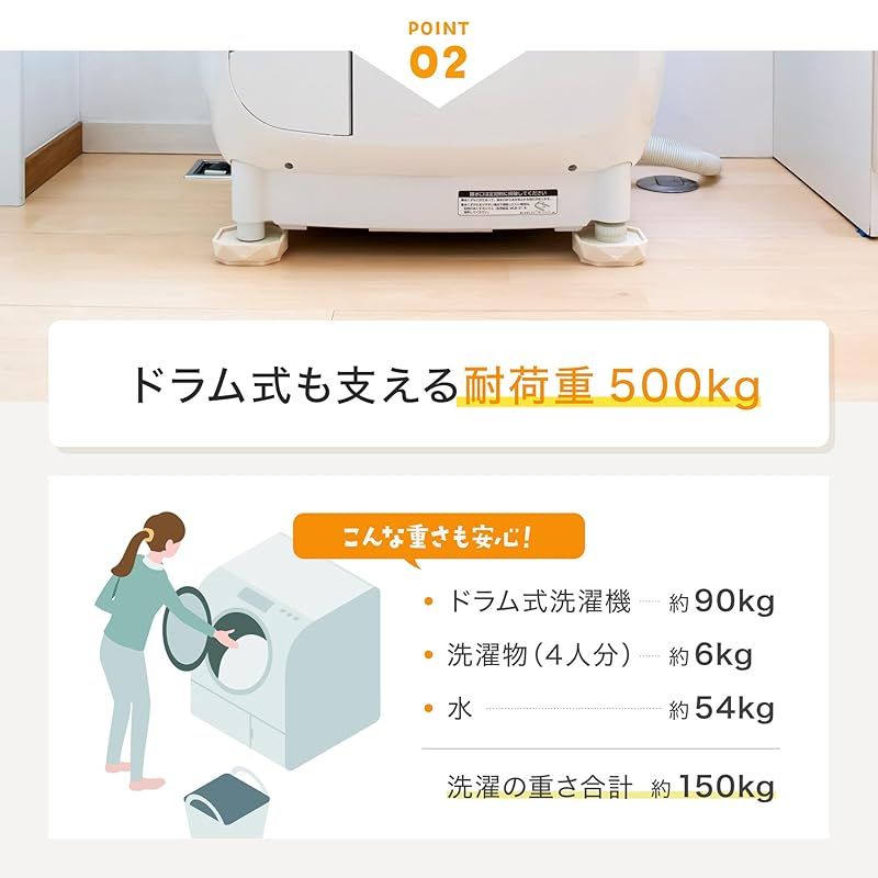 【洗濯機・真下排水設置用】高さを出すことで排水ホースのスペースを確保。排水詰まりのエラー対策にも効果的。高さを上げることで掃除もしやすくなります。