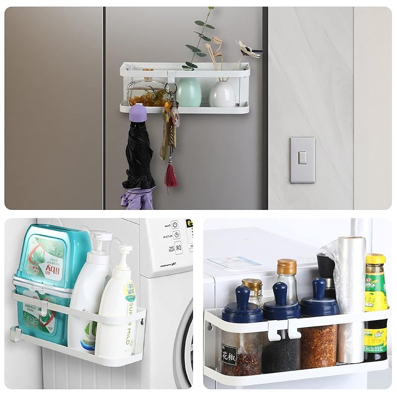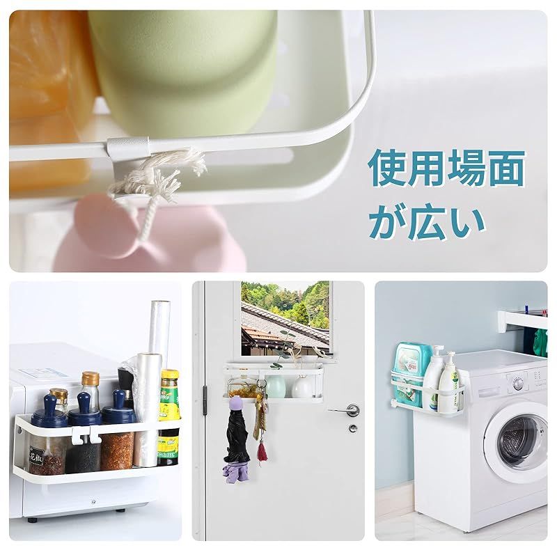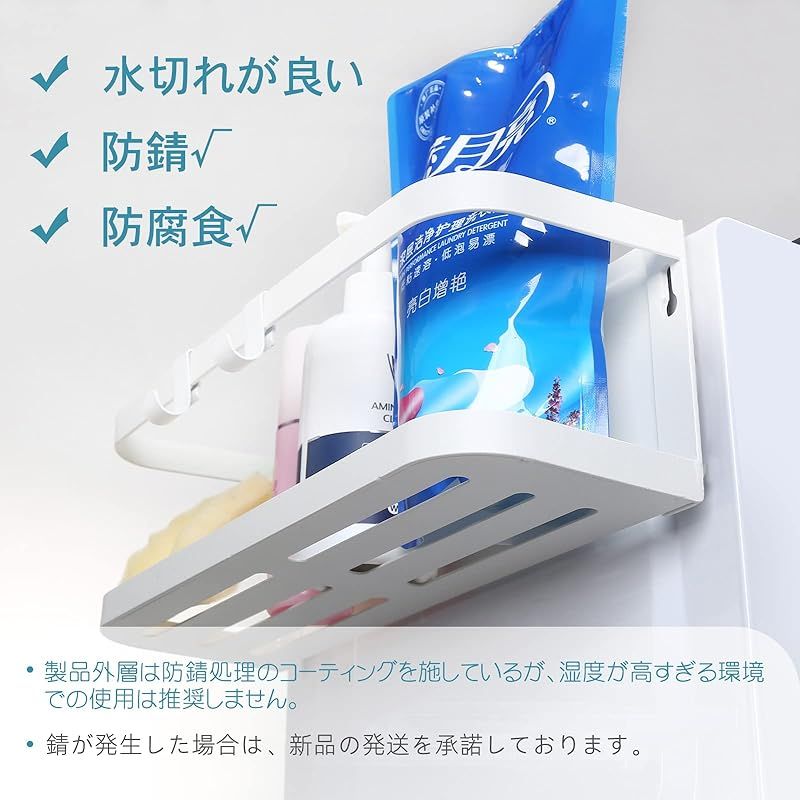 マグネットラックは使うシーンが多い:洗濯用洗剤を収納するだけでなく、キッチンに調味料などの用品を収納し、冷蔵庫側と電子レンジ側に置くこともできます。鉄製のドアも似合います、フック付きので、香水や鍵など収納することも便利です。