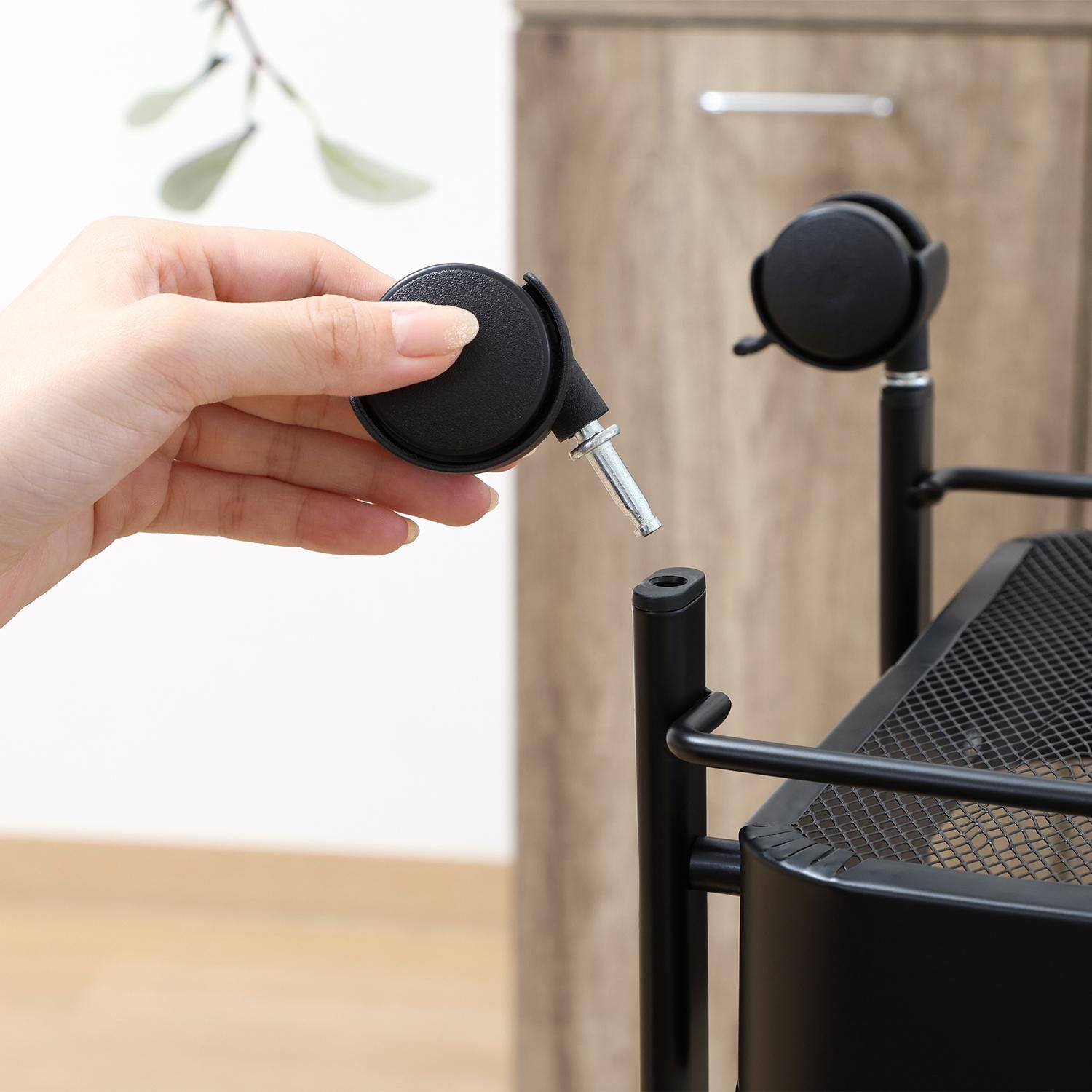 シンプル構造で、組立はキャスターをつけるだけ。手間なくすぐに使えます。