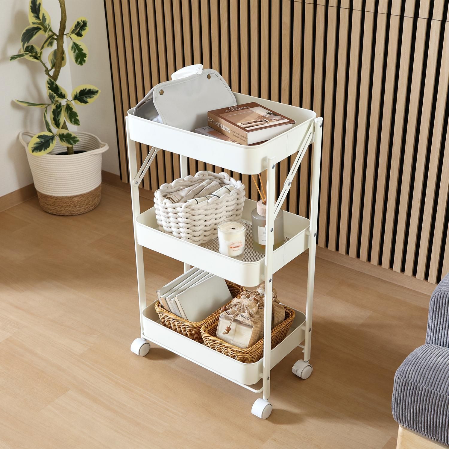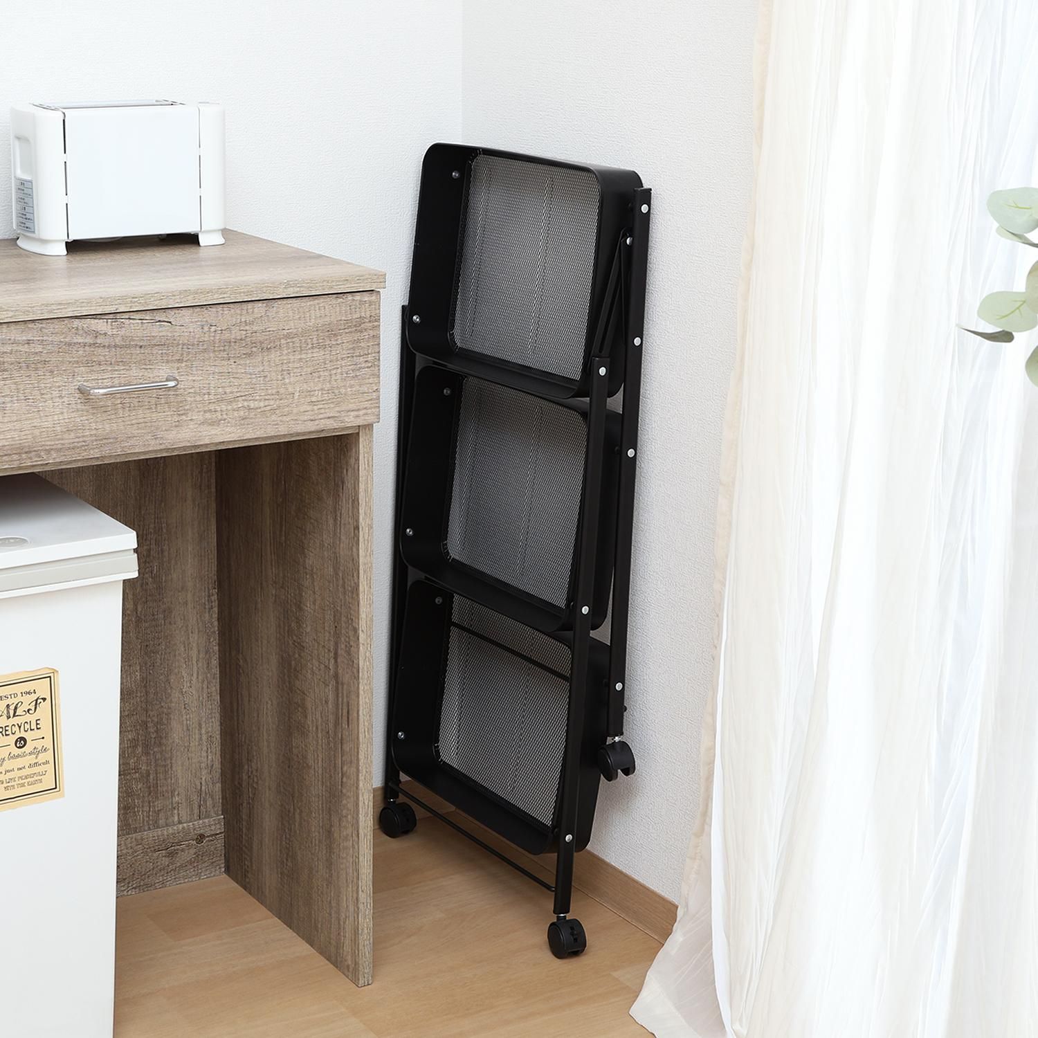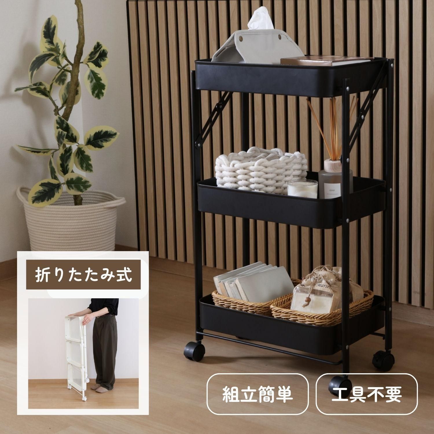 組み立てはキャスターをつけるだけ!たためるマルチワゴン3段