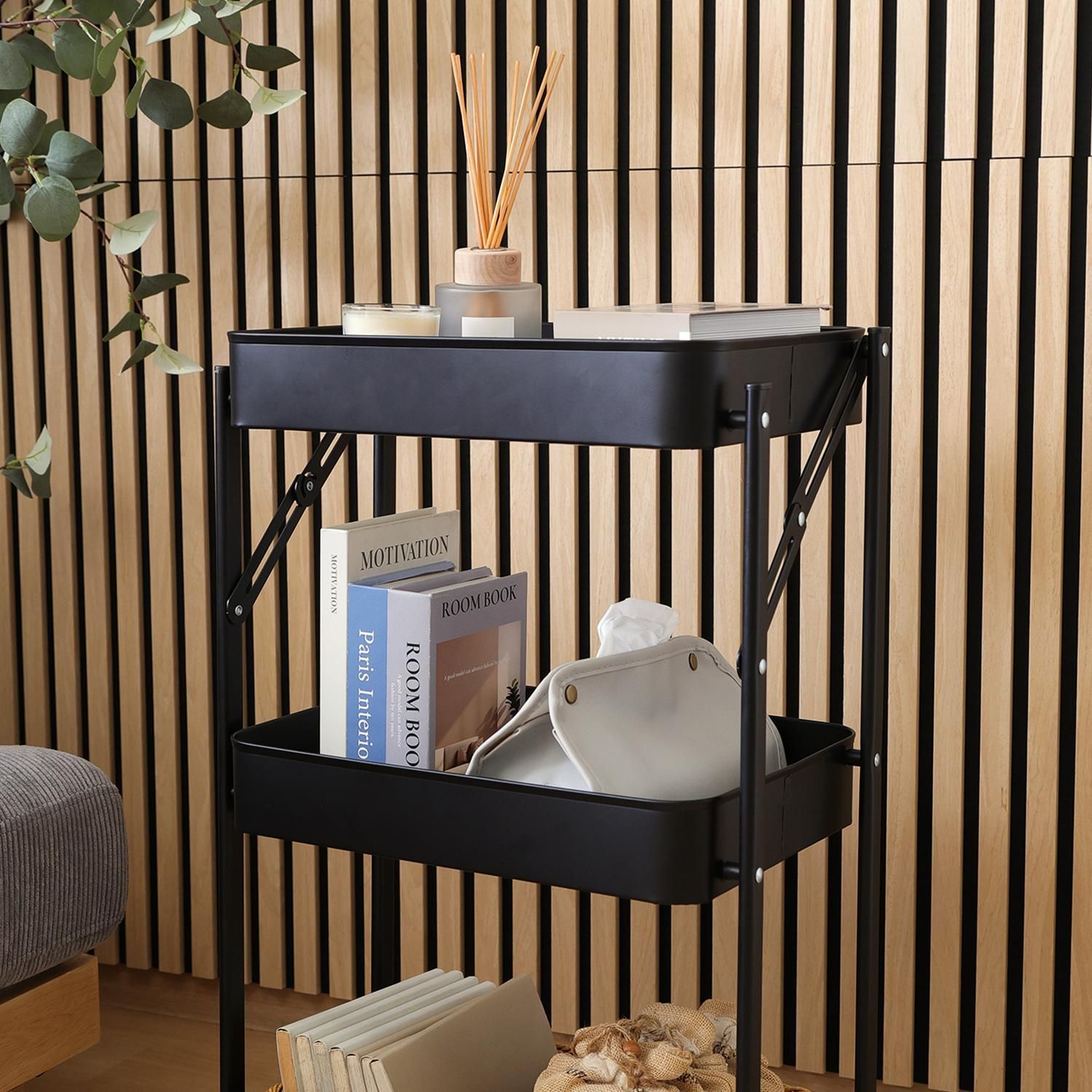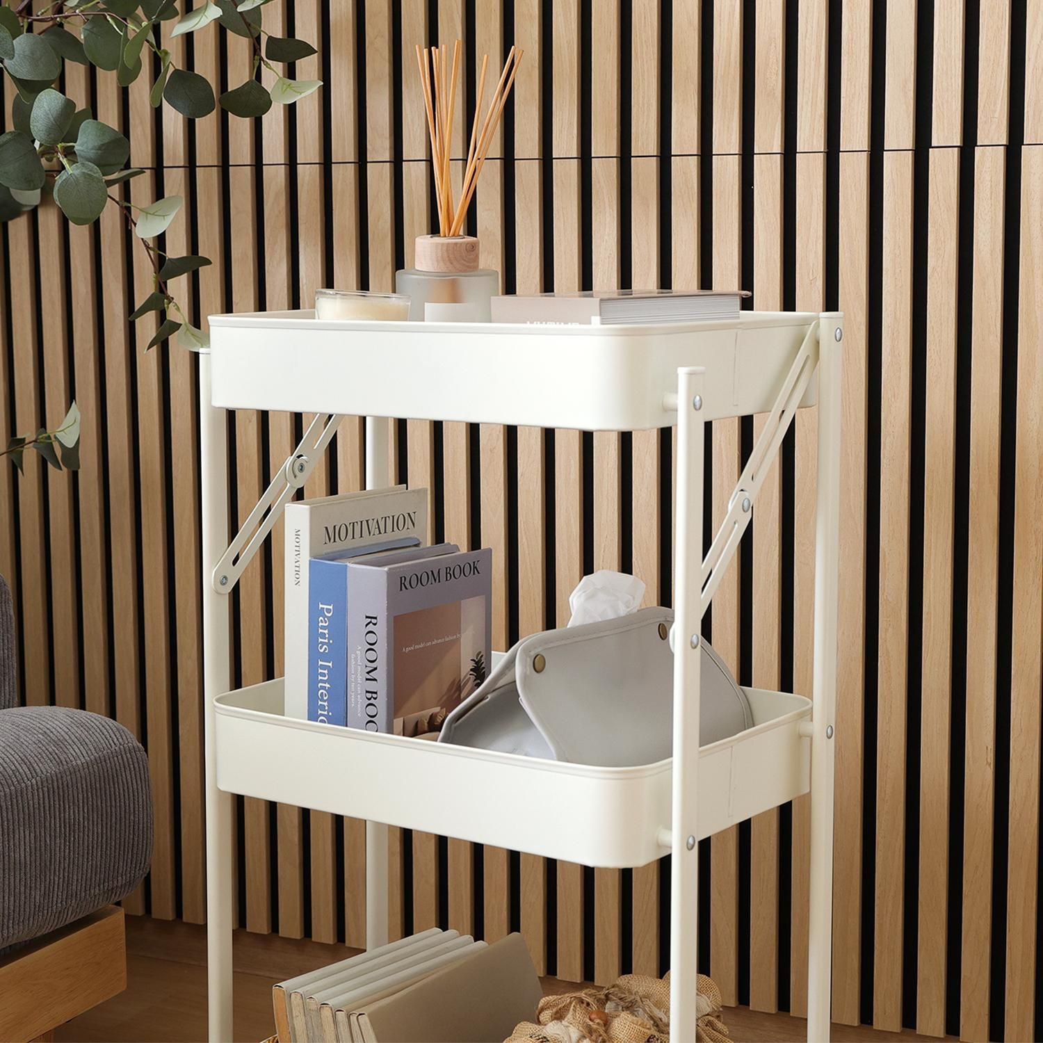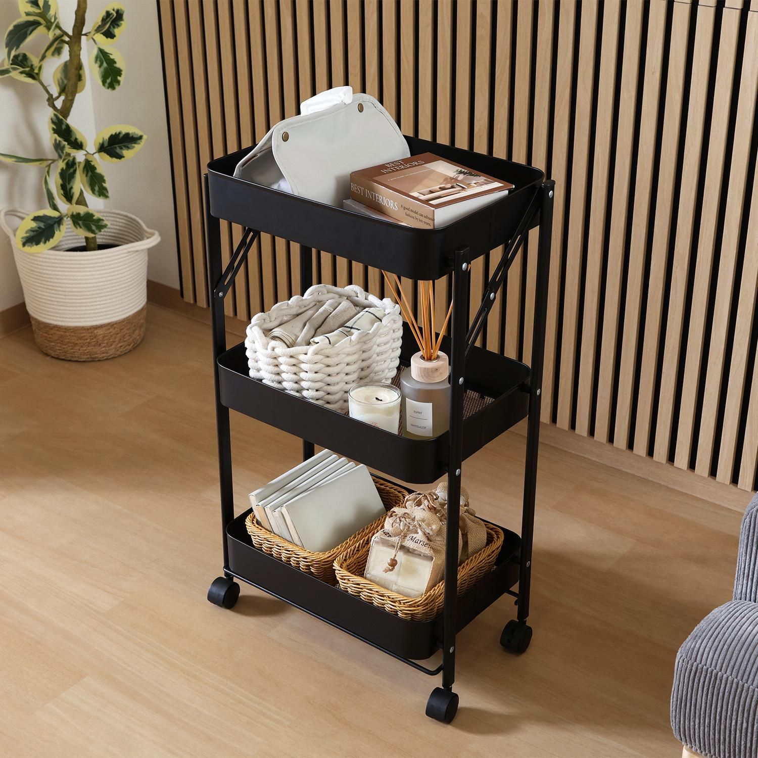 組み立てはキャスターをつけるだけ!たためるマルチワゴン3段