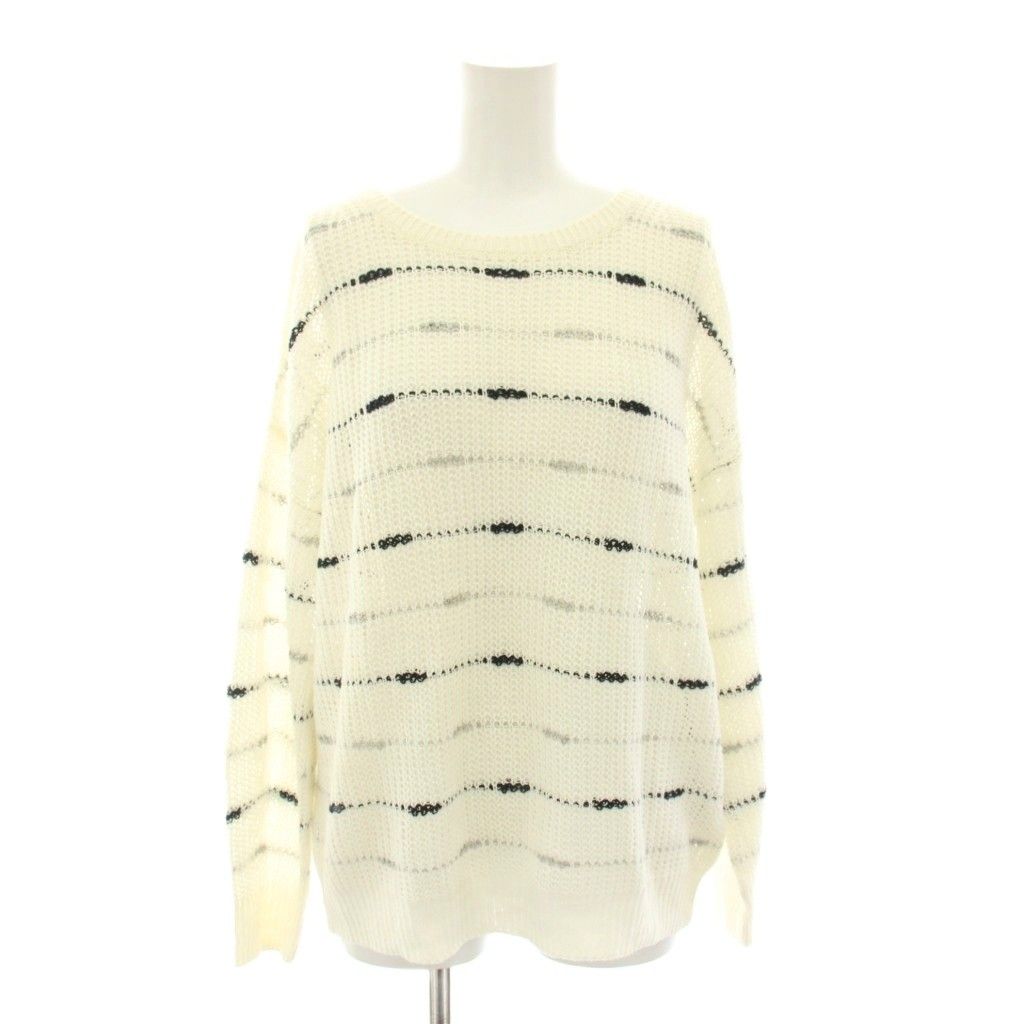 【商品名】セオリーリュクス theory luxe ニーノ ラケル NINO RAKEL ニット セーター クルーネック 長袖 ボーダー柄 シアー 麻 リネン 38 白 ホワイト 黒 ブラック 03-9101713-000-038 /YT