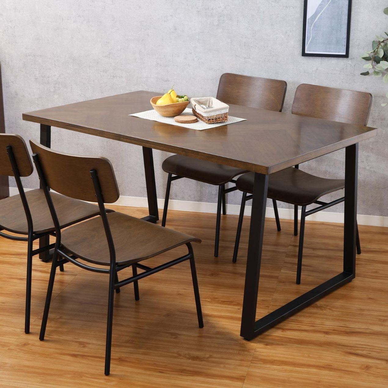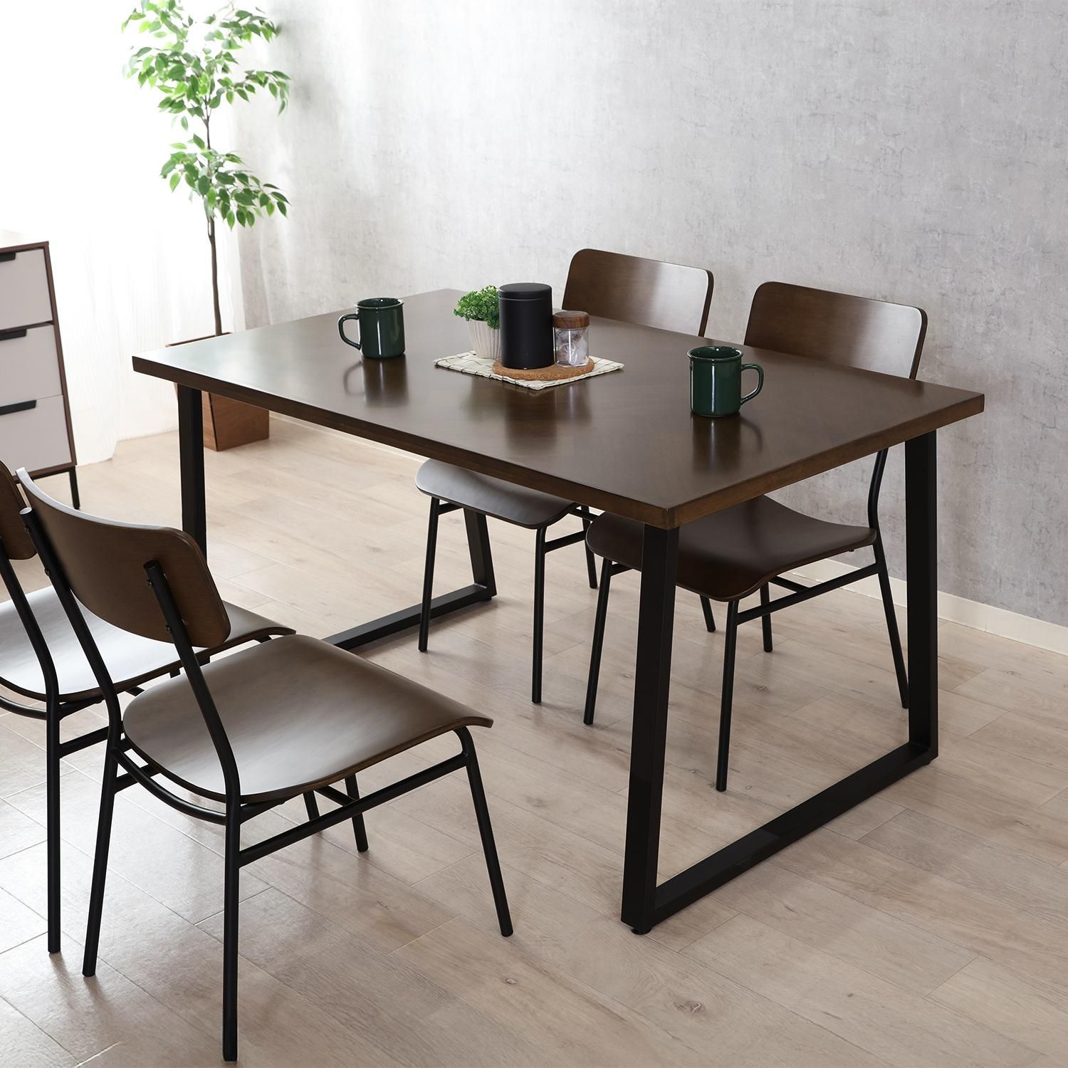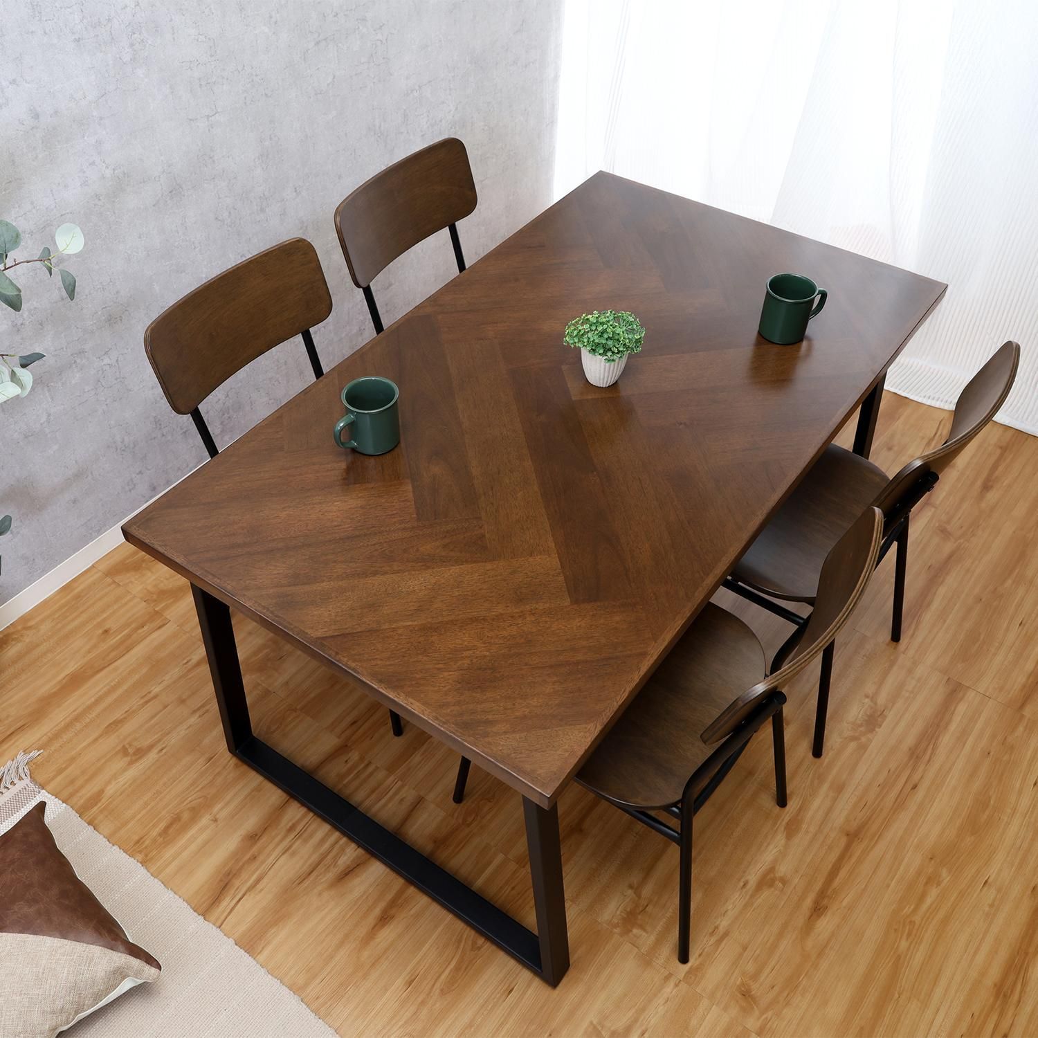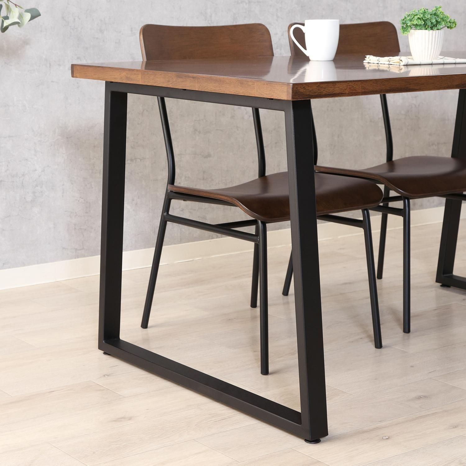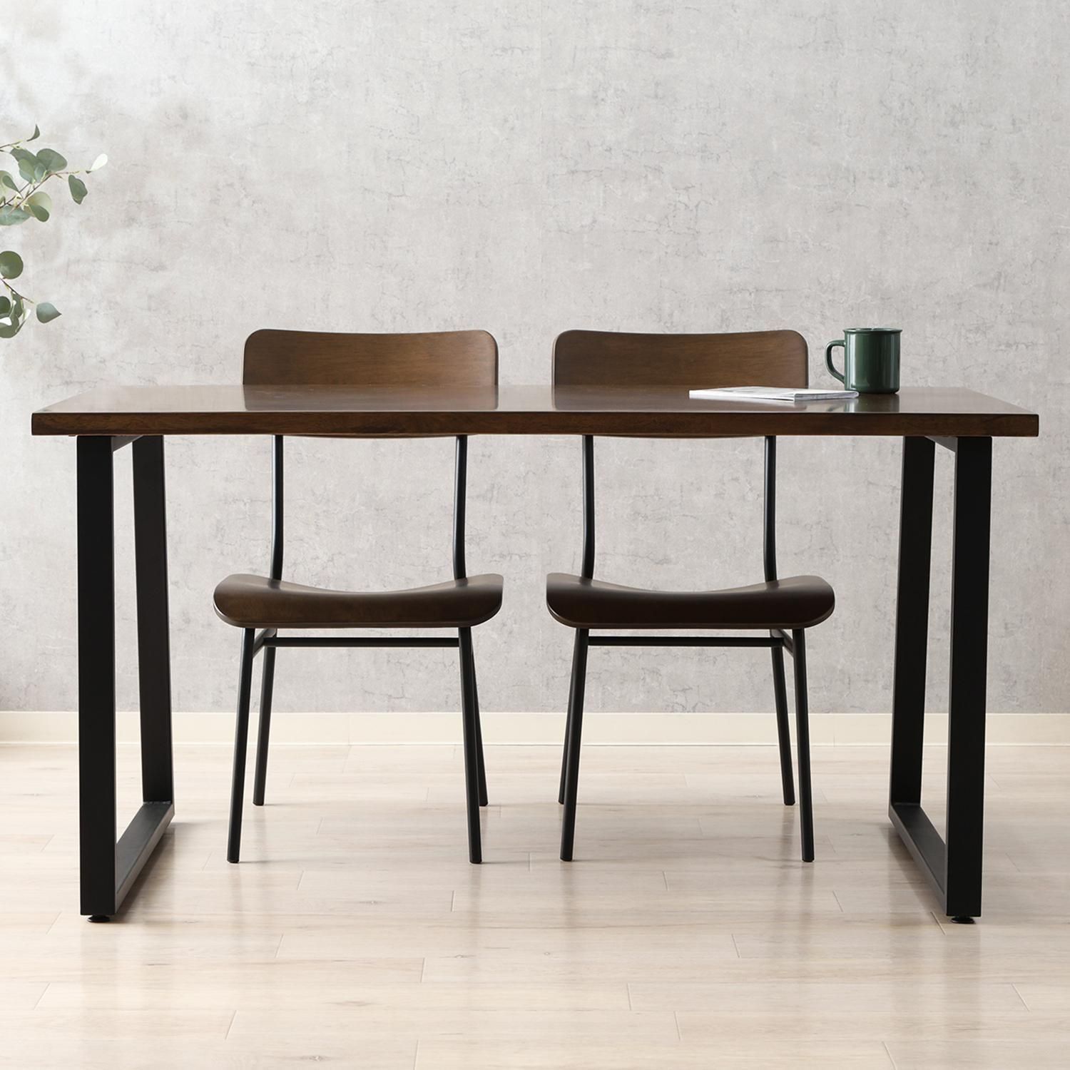 落着きのあるダークブラウンの天板と重厚感のあるアイアン脚。異素材感が心地よいデザインです。