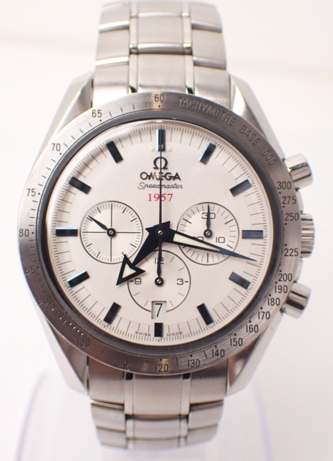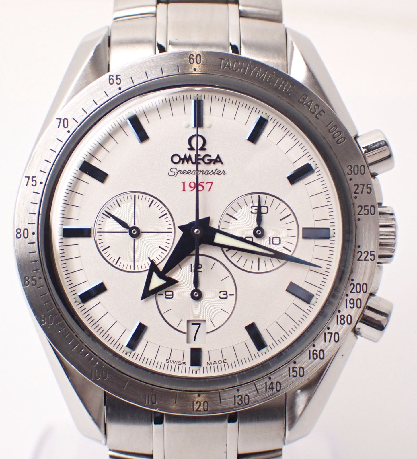 説明:OMEGA(オメガ) スピードマスターブロードアローコーアクシャルクロノメーター1957 50周年記念モデル 321.10.42.50.02.001 SS AT です。
