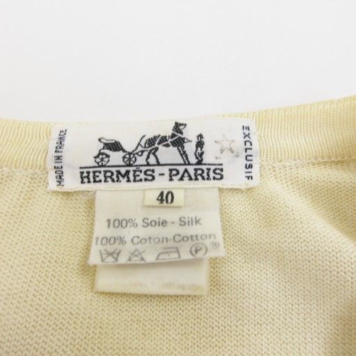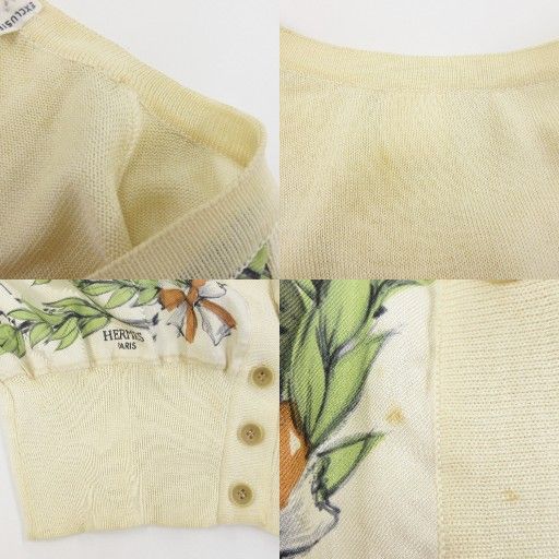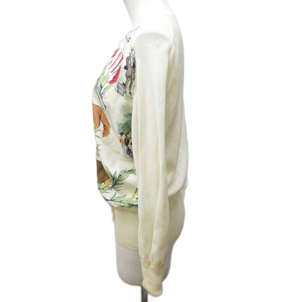 【商品名】エルメス HERMES CHANTILLY 競馬場 ニット カーディガン 切替 スカーフ柄 シルク 40 約L ライトベージュ 系 ■MNK3 1202