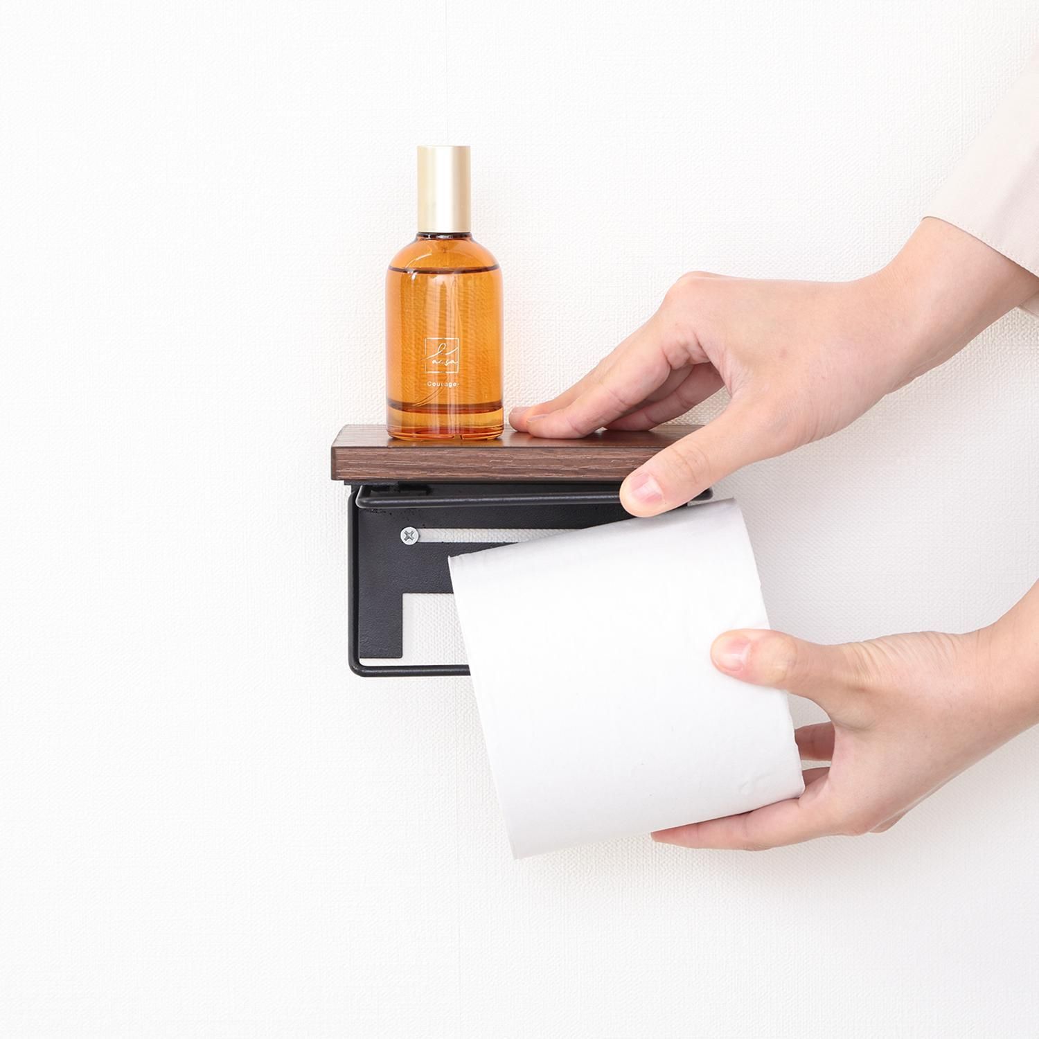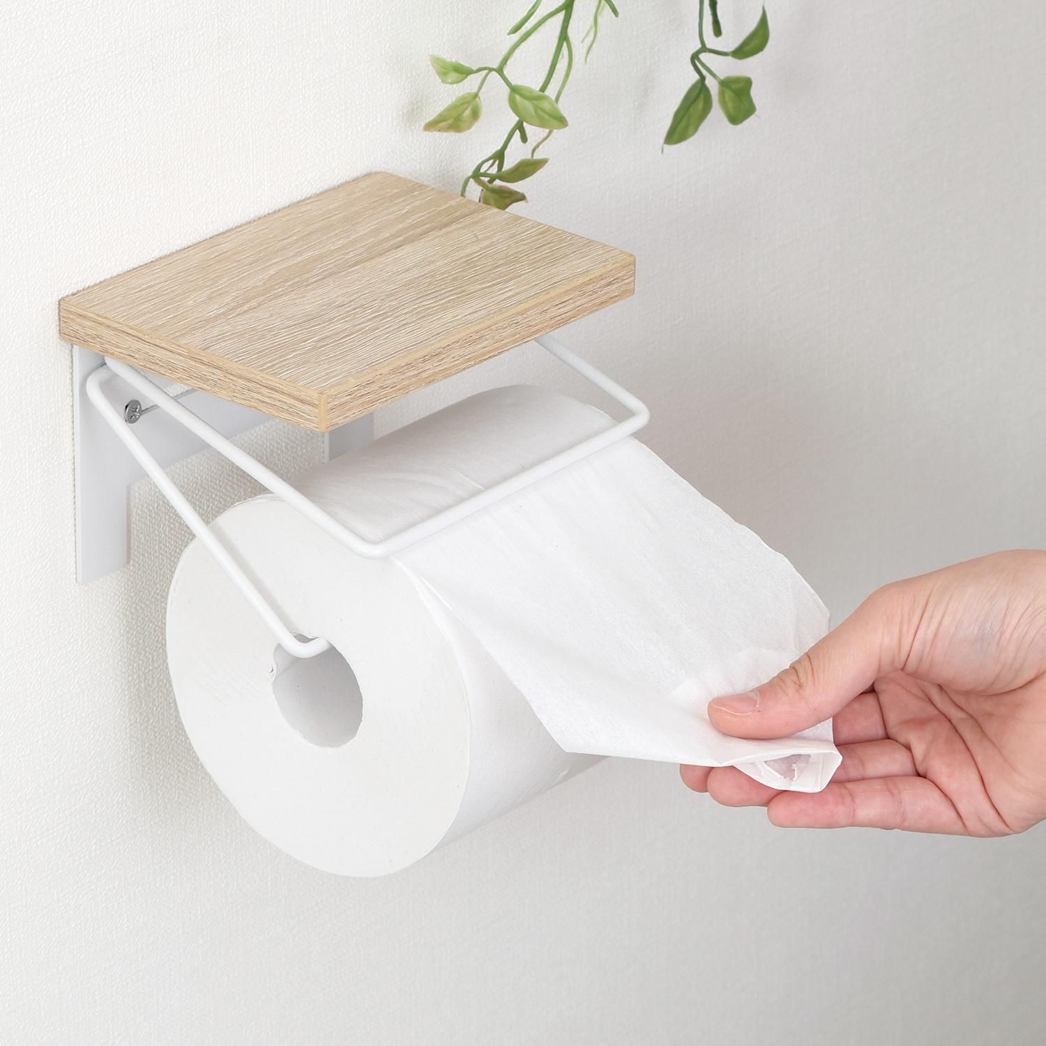 木目×ワイヤーのおしゃれなトイレットペーパーホルダー シングル
