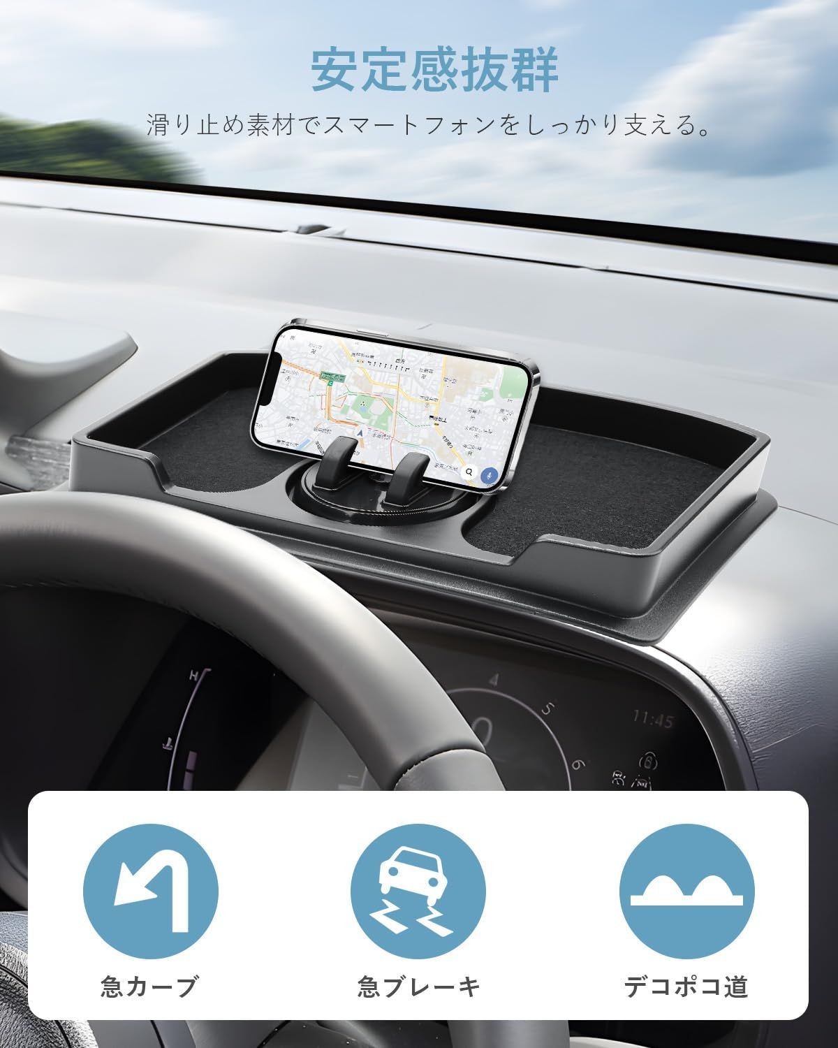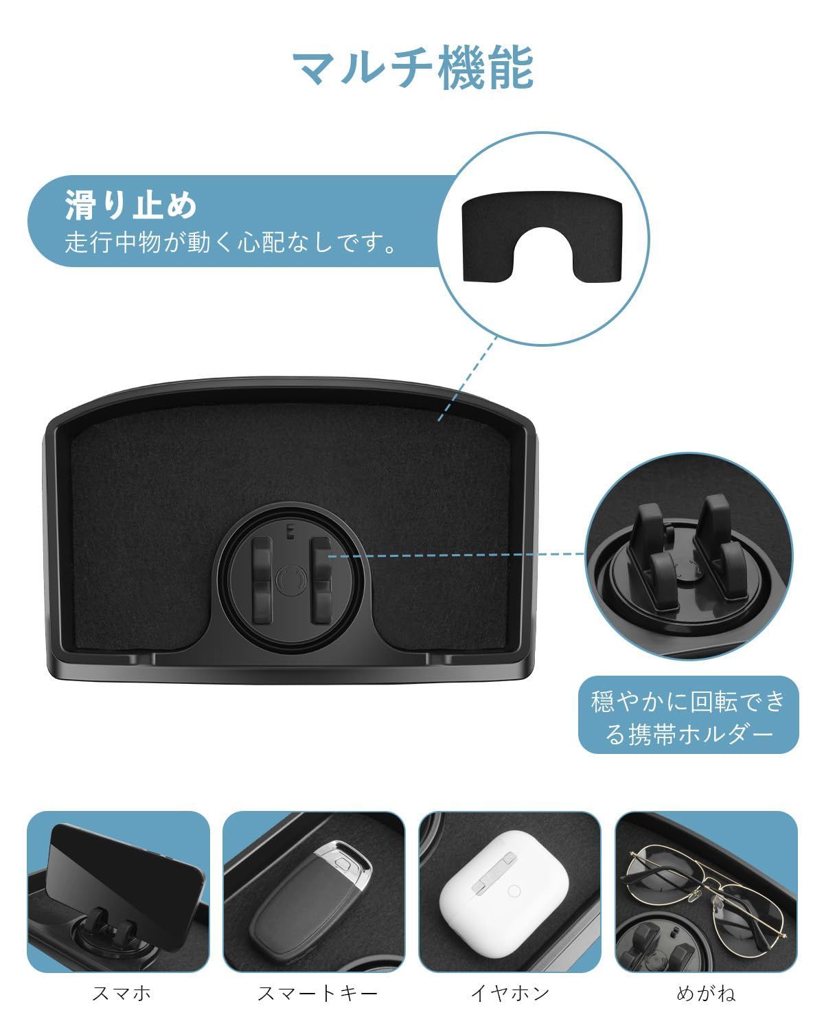 【マルチ機能】普段に運転中にスマホでナビを使いたいと思うことはありませんか?また、サングラスや車のスマートキーなどの小物をどこに置くべきか迷うこともあるかと思います。別途で別々に購入するのは面倒ですよね。SKTU車種専用の車載スマホホルダーはトレイ型のデザインでスマホを置くことができるだけでなく、手元の小物を収納することもできます。中央にはスマホ専用の回転式スマホホルダーがあり、周りのスペースには滑り止めマットが付いており、サングラスやイヤホン、カードなどの小物を置くことができます。多機能な製品となります。
