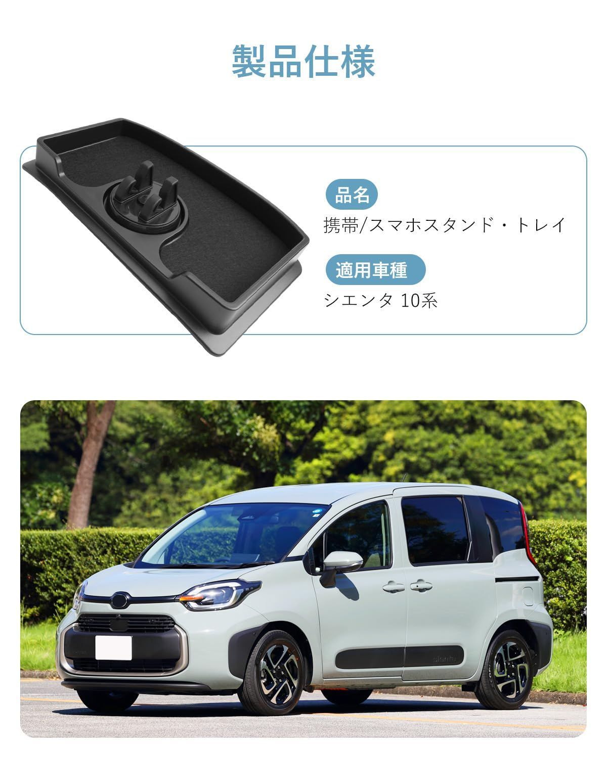 SKTU スマホスタンド シエンタ10系専用 スマホホルダー 携帯ホルダー 角度調整可能 トレイ型 携帯スタンド 小物置け 滑り止め ブラック (トヨタ シエンタ 10系 2022+専用)