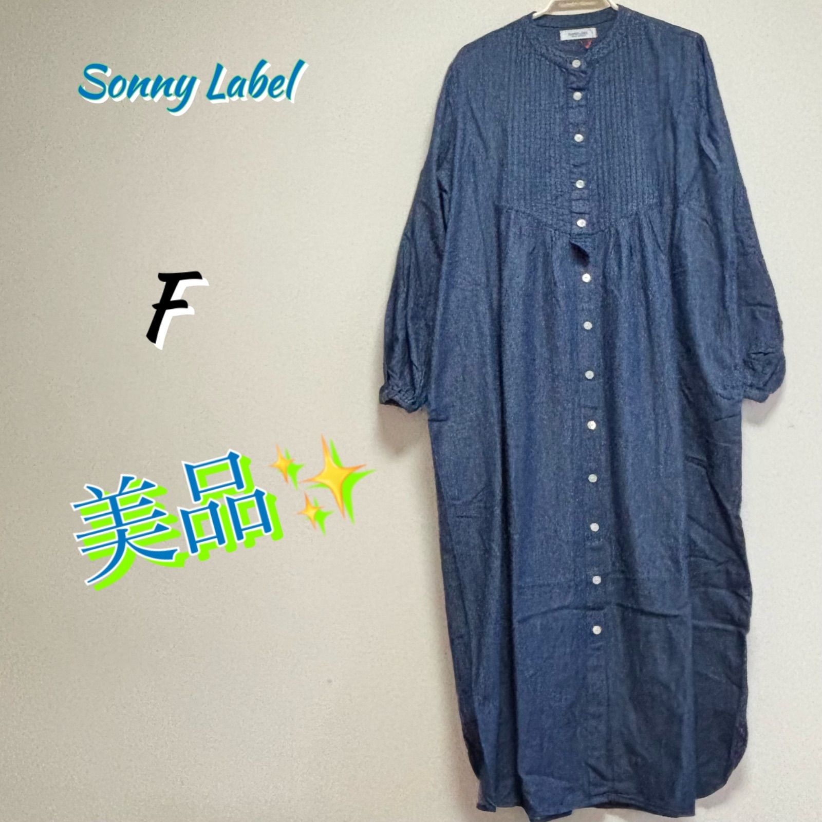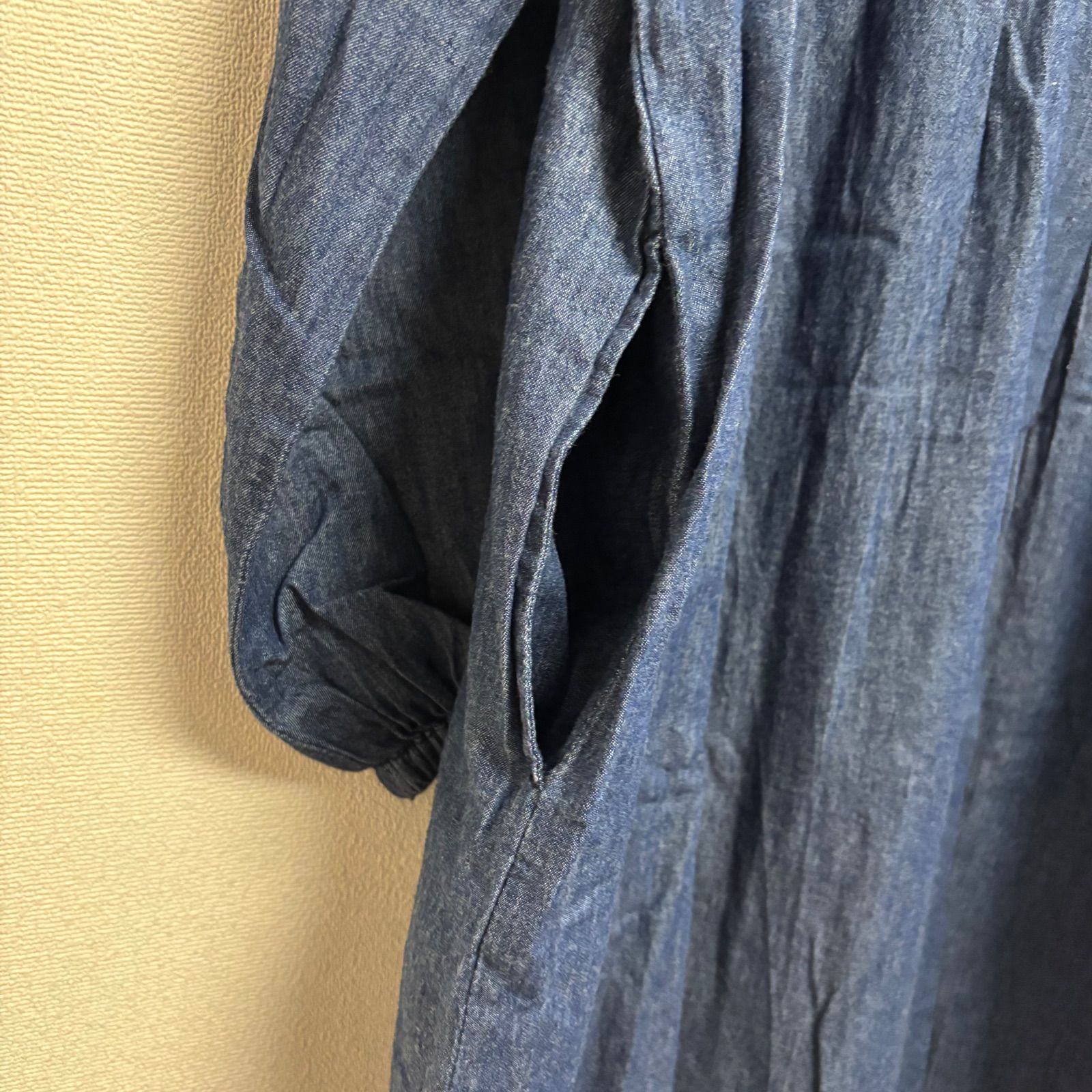 美品✨ソニーレーベル デニムロングワンピース 体型カバー マタニティ可 ポケット付き ブルー F【送料込み】