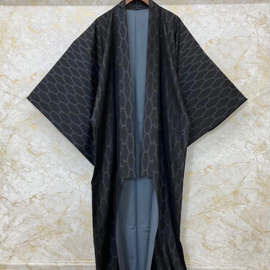 ⬛️ kimomo+one⬛️男前屋⬛️厳選⬛️未使用同然⬛️男着物⬛️本場奄美大島紬⬛️黒⬛️証紙付⬛️キングサイズ⬛️裄72丈161.5⬛男着物男長羽織男襦袢男袴角帯男帯