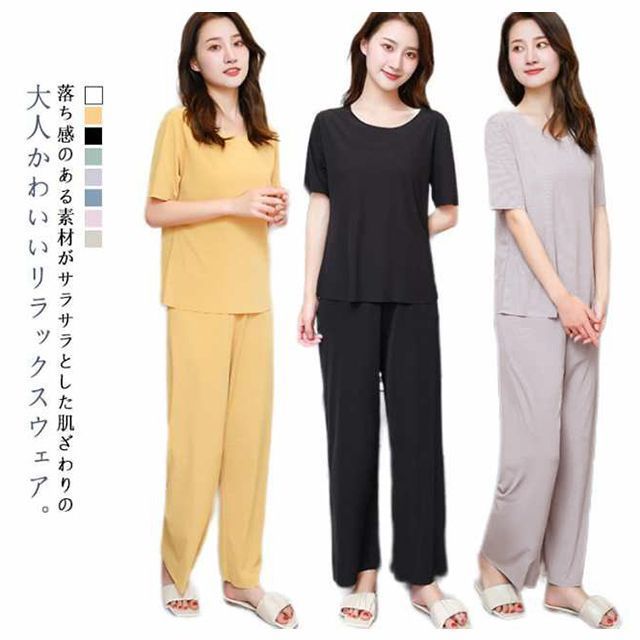 落ち感のある素材がサラサラとした肌ざわりの大人かわいいリラックスウェア。
