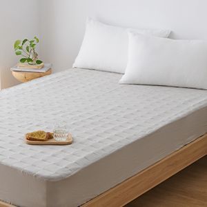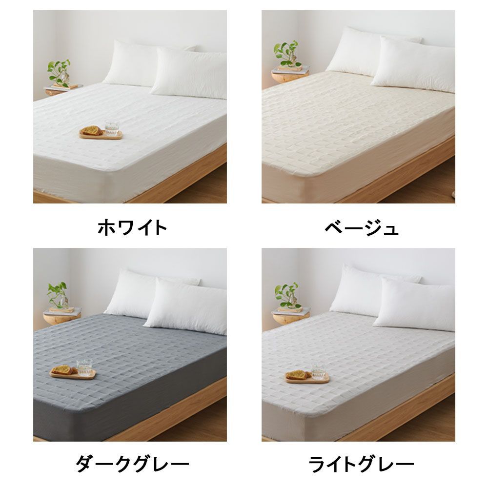 防水シーツ・敷きパッド・ボックスシーツの3役が1枚に集約された便利な一体型タイプ。ふんわり中綿入りで程よいクッション性があり、快適な寝心地を実現。通常のボックスシーツより厚みがあり、柔らかさと反発性を兼ね備えています。