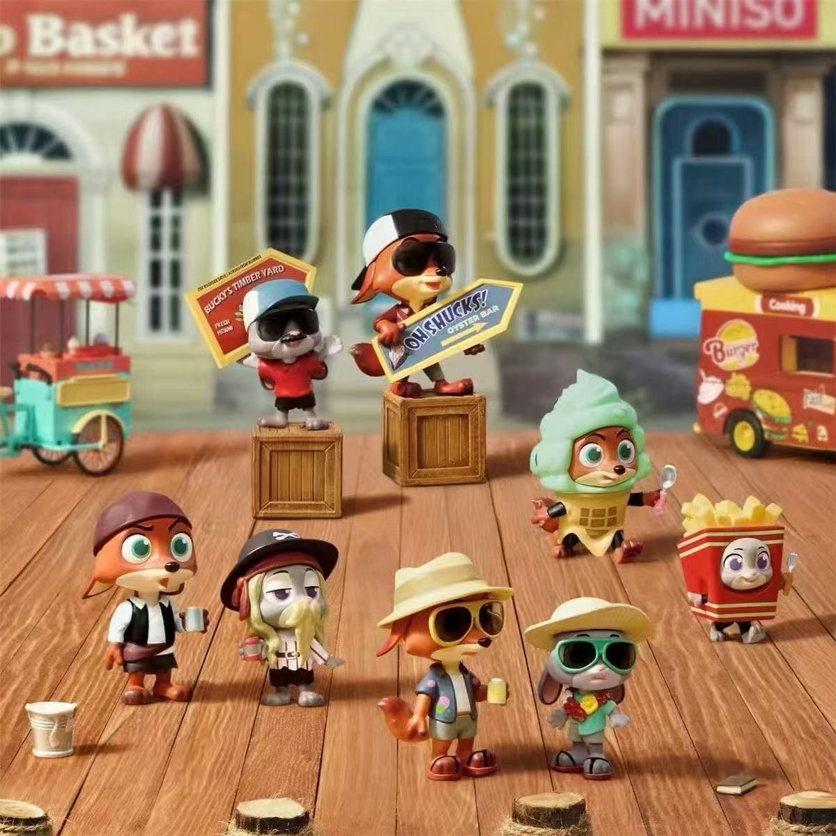 MINISO(ミニソー)とディズニーのコラボレーションによる『ズートピア』シリーズのブラインドボックスフィギュアです。これらのフィギュアは、映画『ズートピア』の人気キャラクターであるニック・ワイルドやジュディ・ホップスなどを、様々な衣装やポーズで可愛らしくデフォルメしたものです。