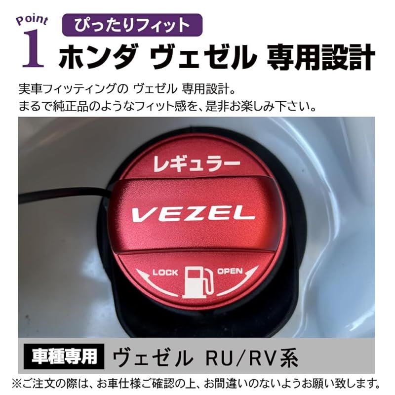 ※本製品は「ヴェゼル RU系/RV系」専用設計です。ご注文の際は、お車仕様及びフューエルキャップの形状をご確認の上、お間違いのないようお願い致します。