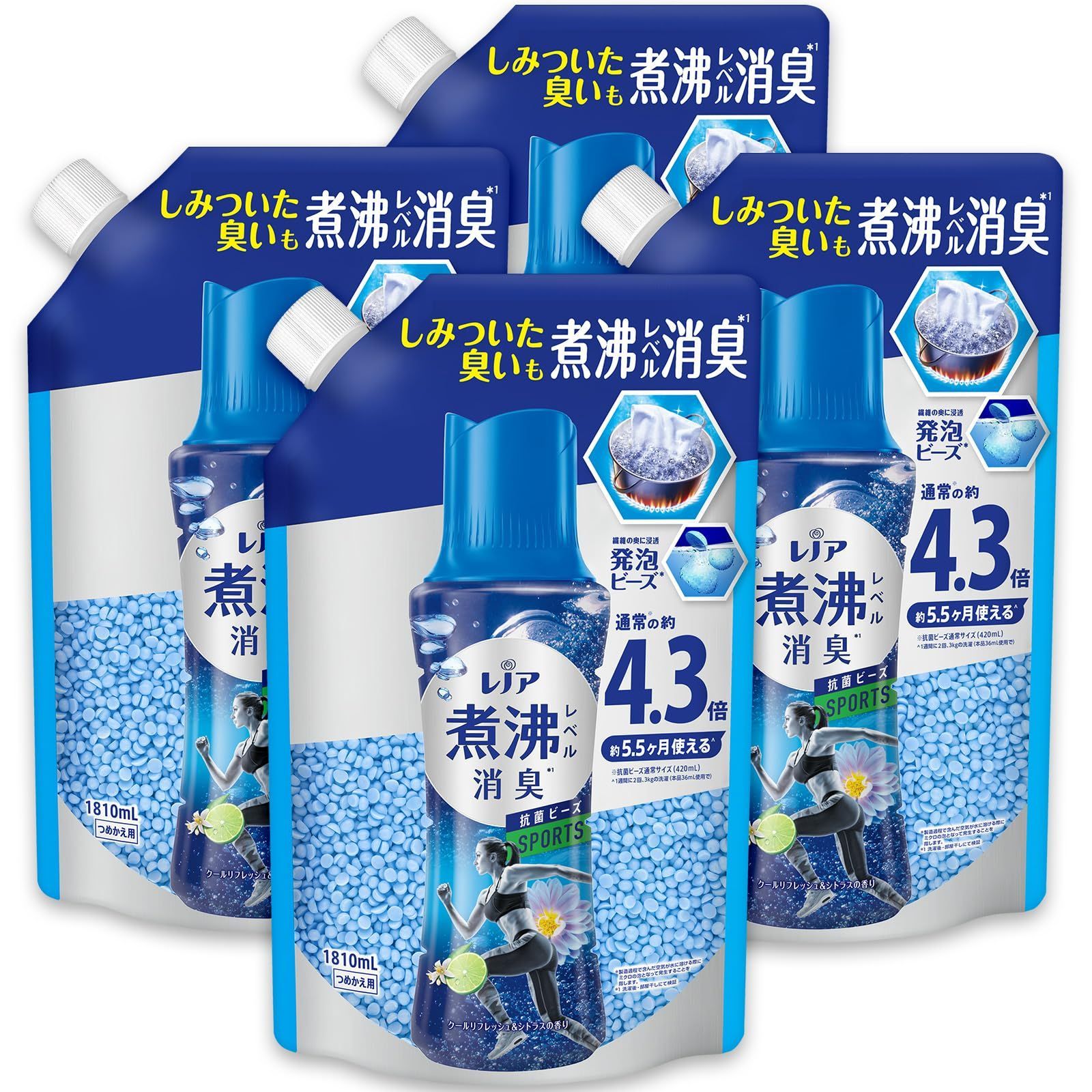 詰め替え 1810mL×4袋 レノア 超消臭 煮沸レベル消臭 抗菌ビーズ SPORTS クールリフレッシュ&シトラス 詰め替え 1,810mL×4袋 [大容量] [ケース品]